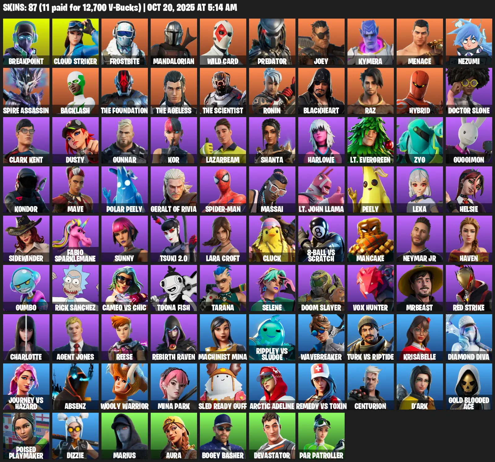 [PC/PSN/XBOX] | 87 skins | Leviathan Axe | Lara Croft | Breakpoint | Cloud Striker | Frostbite | Mandalorian | Wild Card | Predator | Joey | S4G