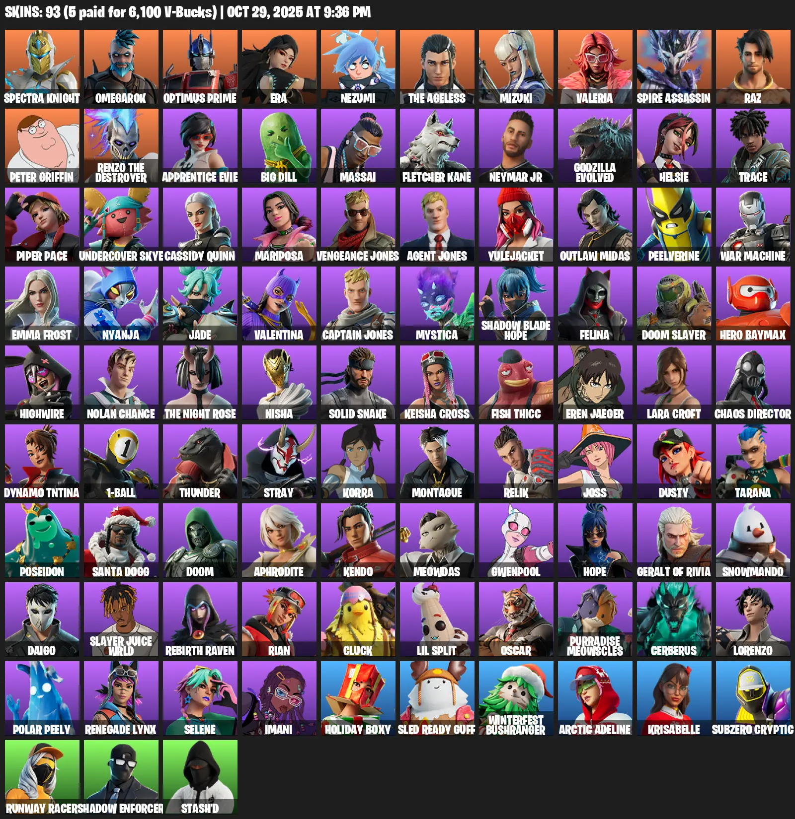[PC/PSN/XBOX] | 93 skins | Lara Croft | Spectra Knight | Omegarok | Optimus Prime | Era | Nezumi | The Ageless | Mizuki | Valeria | #QUN2591 | #MBFN