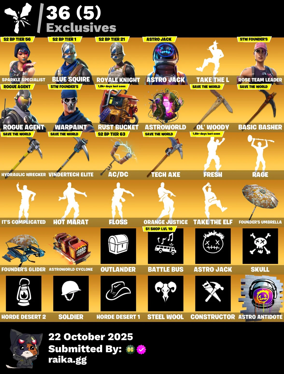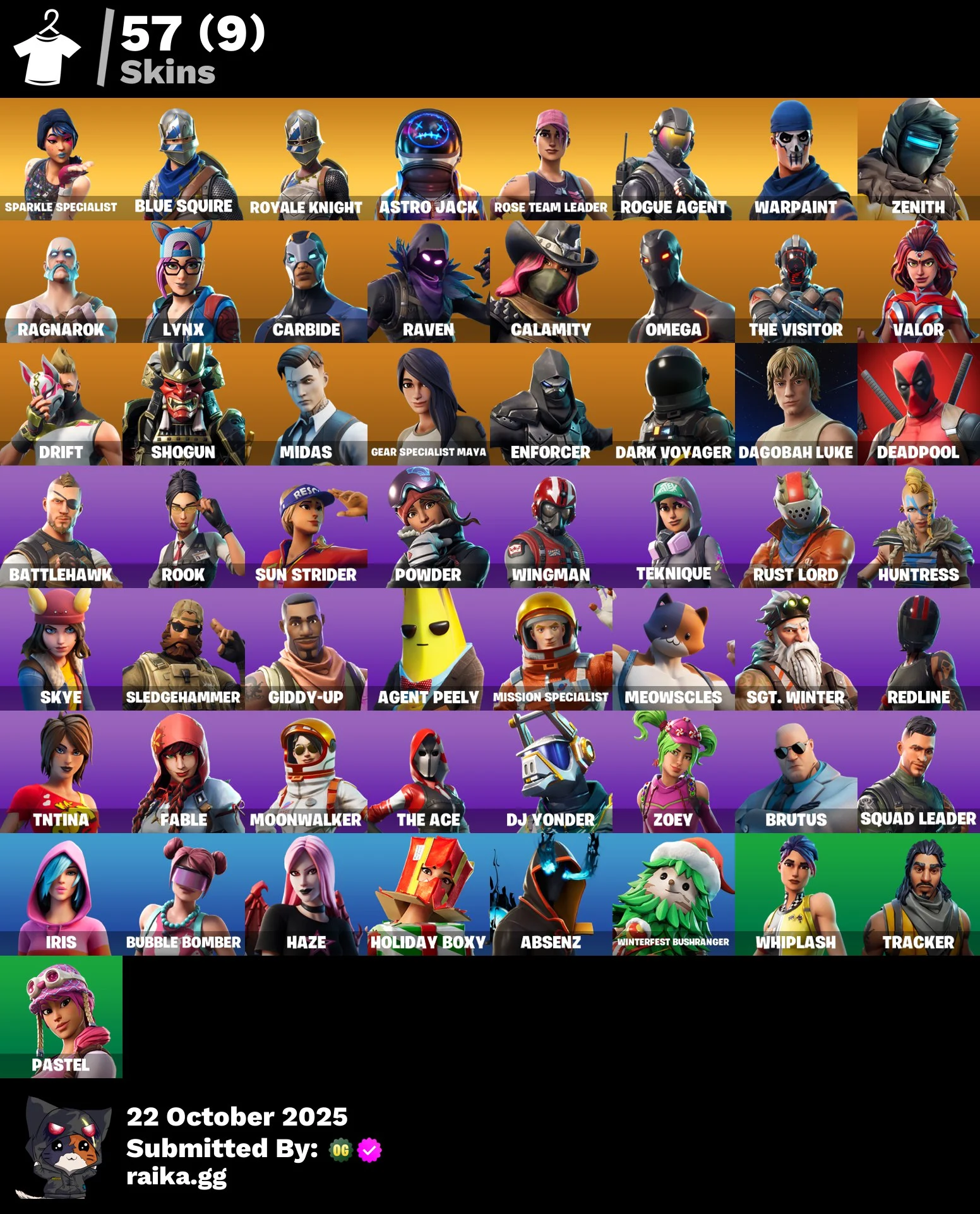 PC/PSN/Xbox/Nintendo 57 skins | OG STW | Sparkle Specialist | Blue Squire | Royale Knight | Astro Jack | Rogue Agent | Zenith | Ragnarok | Lynx | Carbide | Raven | 100 VB