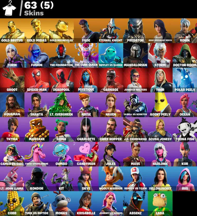 🔥 [PC/PSN/XBOX/SWITCH] 63 Skins | Gold Brutus | Gold Midas | Gold Meowscles | Fade | Eternal Knight | Predator | Gear Specialist Maya | Ronin | Torin | Fusion | 20 VB 💸