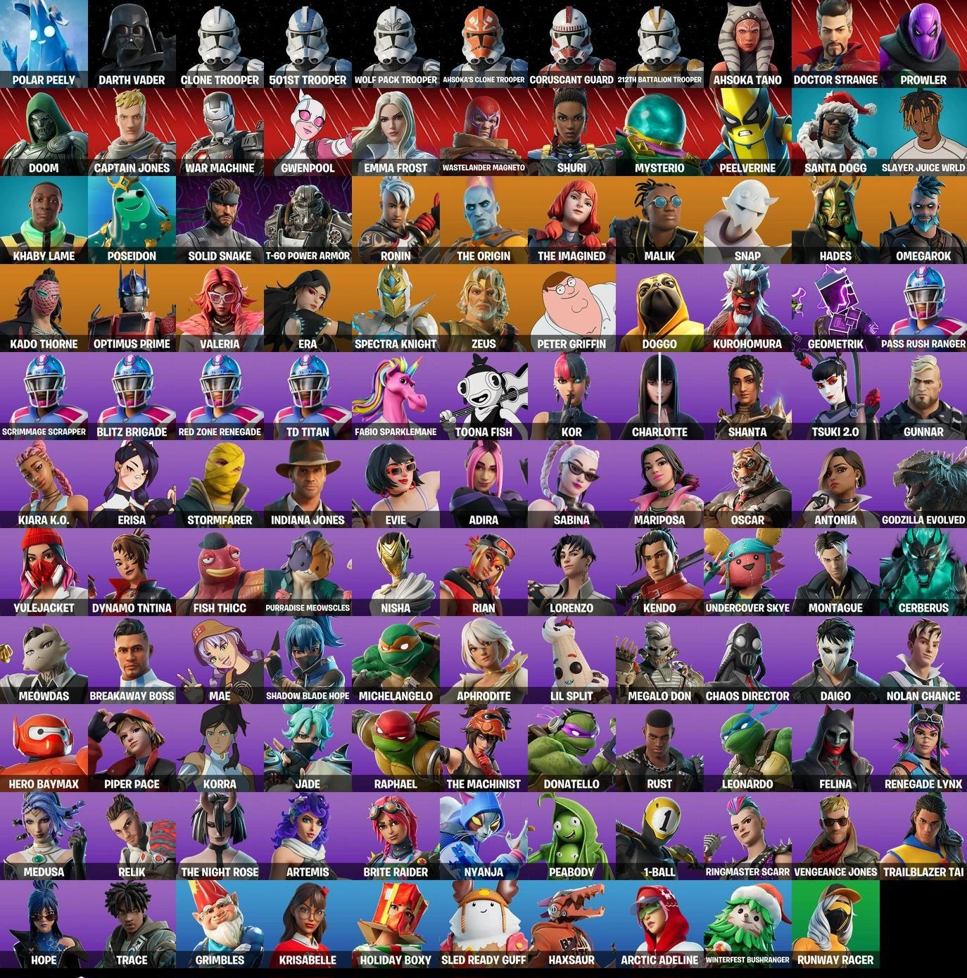 [PC/XBL/PSN] | 120 Skins | Solid Snake | Mariposa | Santa Dogg | Doom | Oscar | Ol' Woody | Basic Basher | Default Pickaxe | 900 VB