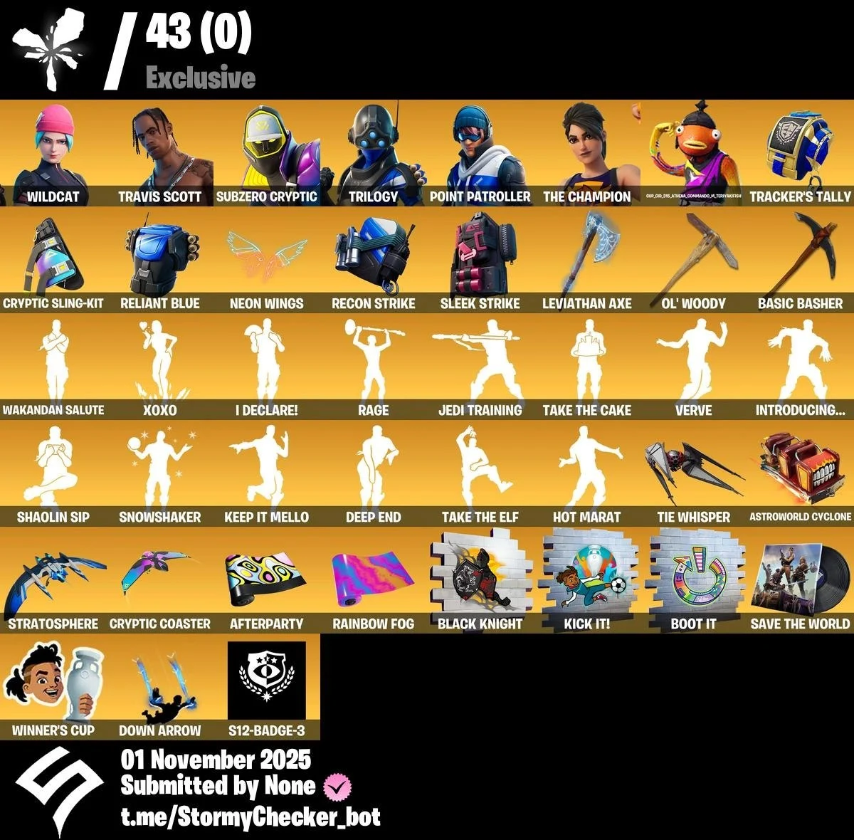 [PC/XBL/PSN] | 240 Skins | Wildcat | Travis Scott | Subzero Cryptic | Trilogy | Point Patroller | Leviathan Axe | Ol' Woody | Basic Basher | S12-Badge-3 | 700 VB