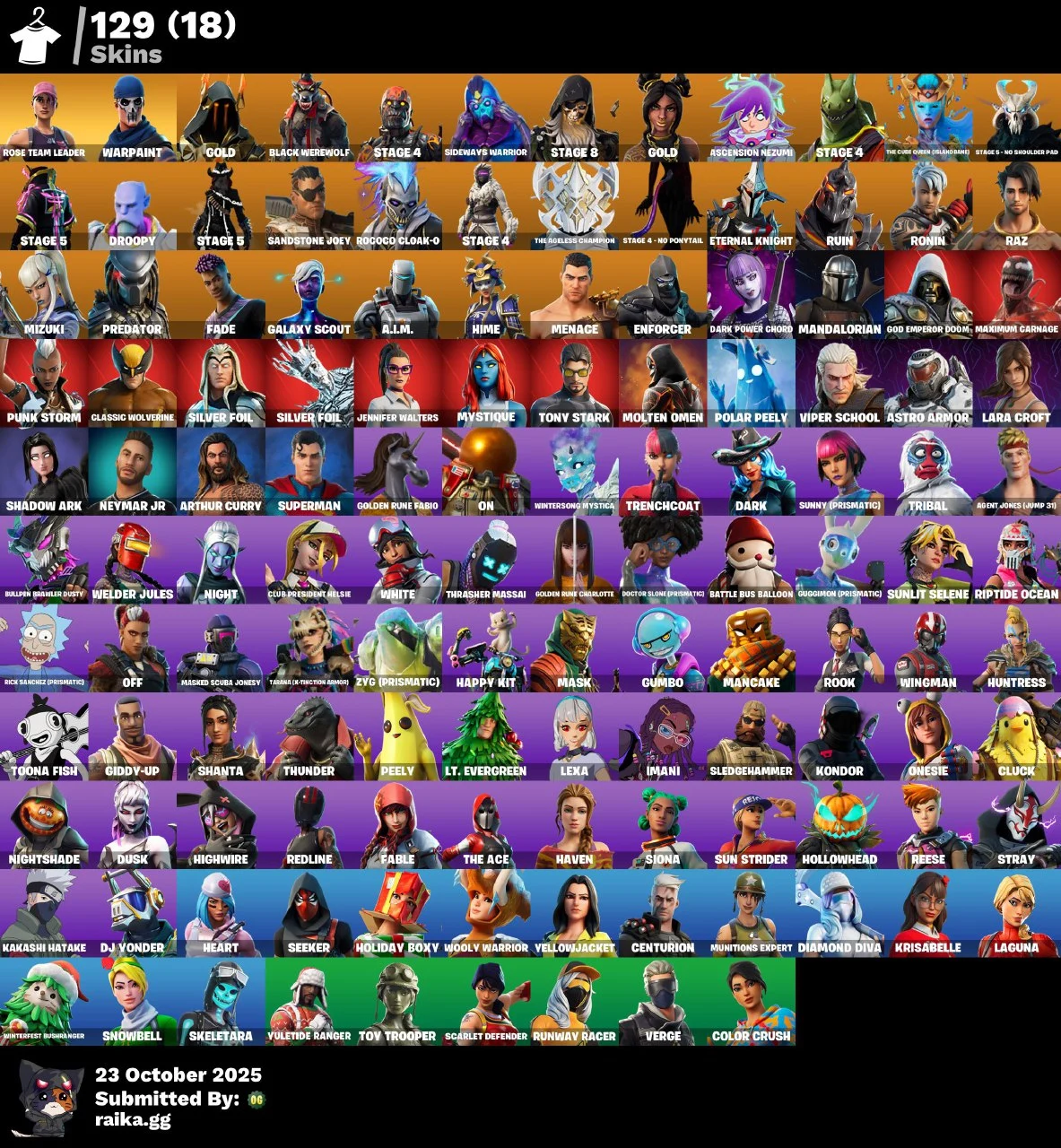 [PC/XBOX] 129 skins | OG STW | Lara Croft | Tony Stark | Peely | Kurama | Mystique | Mandalorian | Kakashi Hatake mssh875