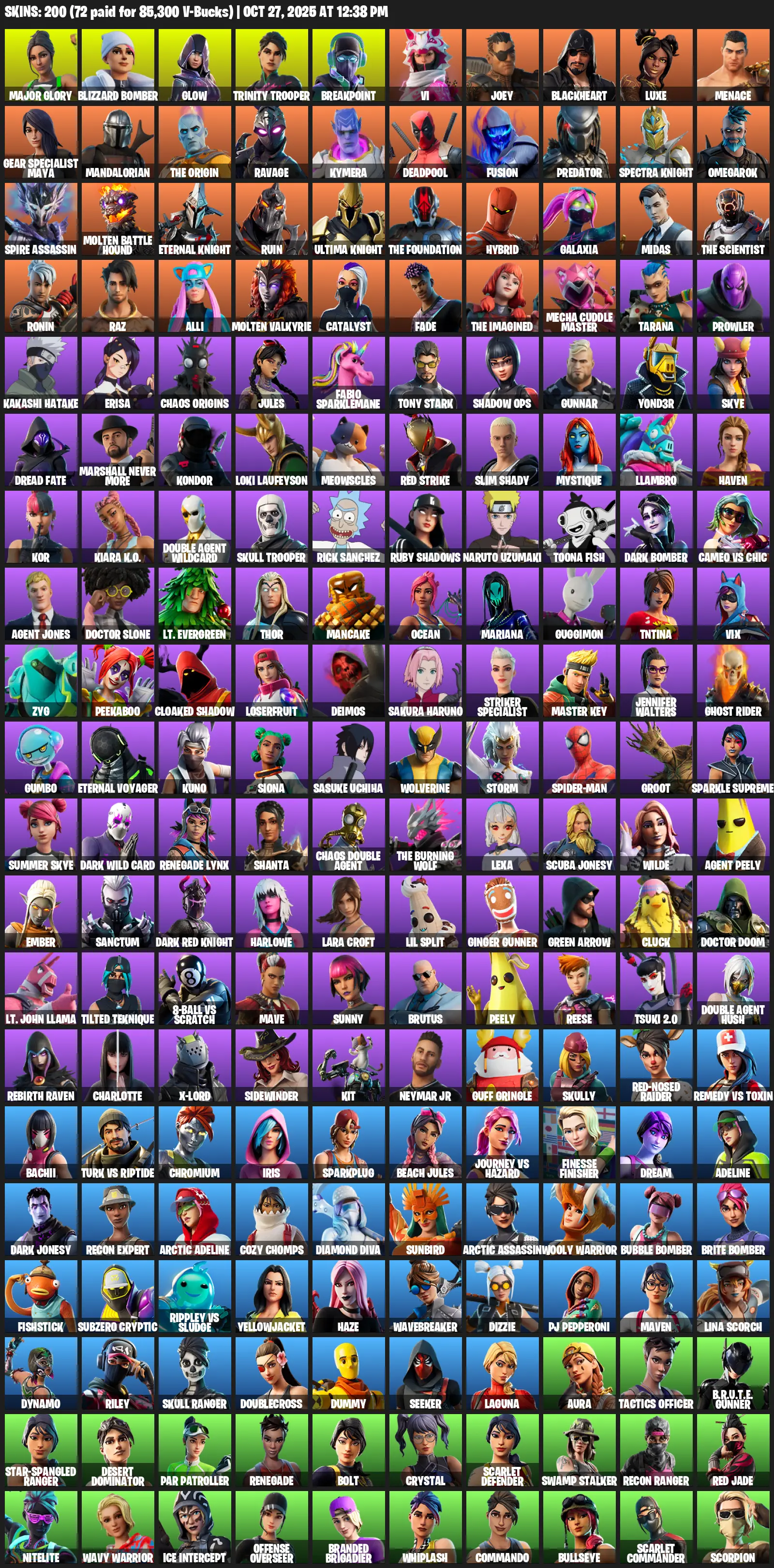 [PC/XBOX] | 200 skins | Leviathan Axe | Lara Croft | Major Glory | Blizzard Bomber | Glow | Trinity Trooper | Breakpoint | Vi | #BCO6538 | #MBFN