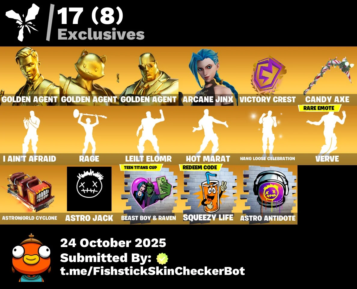 [PC.XBOX/NINTENDO] 119 skins | Arcane Jinx | Gold Midas | Gold Meowscles | Gold Brutus | Gold Lara Croft | Verve | Candy Axe | Sorana | Raz | The Cube Queen | Eternal Knight | Omegarok | 1600 VB