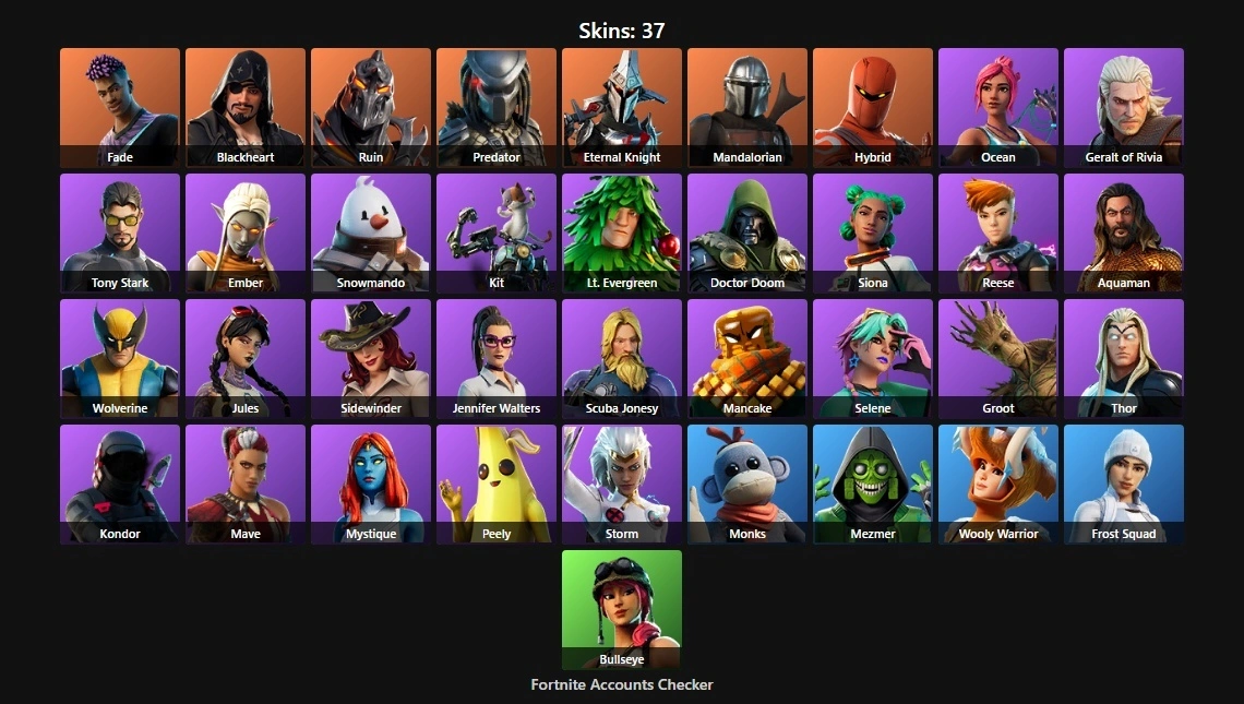 PC/XBOX/PSN 37 Skins⭐️ | Peely | Fade | Blackheart | Ruin | Predator | Eternal Knight | Mandalorian | Hybrid | Ocean | Geralt of Rivia | Tony Stark | Ember