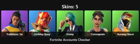 PC/XBOX/PSN 5 Skins⚡ | Trailblazer Tai | Holiday Boxy | Envoy | Commando | Runway Racer | Boogie Down | Crowning Achievement | Foil Flex | Hypnot-Eyes