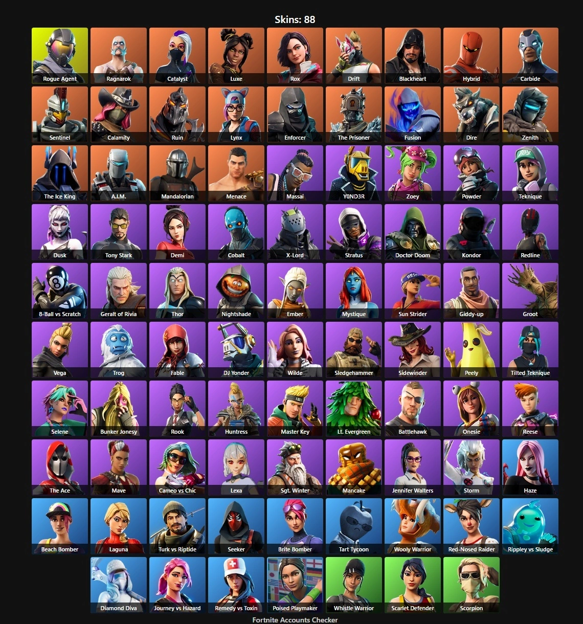 PC/XBOX/PSN 88 Skins⚡ | Peely | Rogue Agent | Ragnarok | Catalyst | Luxe | Rox | Drift | Blackheart | Hybrid | Carbide | Sentinel | Calamity | Ruin | Lynx