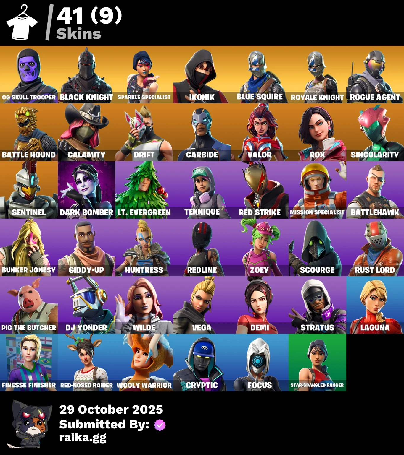 PREMIUM OG & EXCLUSIVES 🔥 PC/PSN/XBOX 🚨 41 Skins | Og Skull Trooper | Black Knight | IKONIK | Sparkle Specialist | Merry Mint Axe | Take The L | Blue Squire | Royale Knight | Rogue Agent | Battle Hound | Calamity | Drift | 100 VB