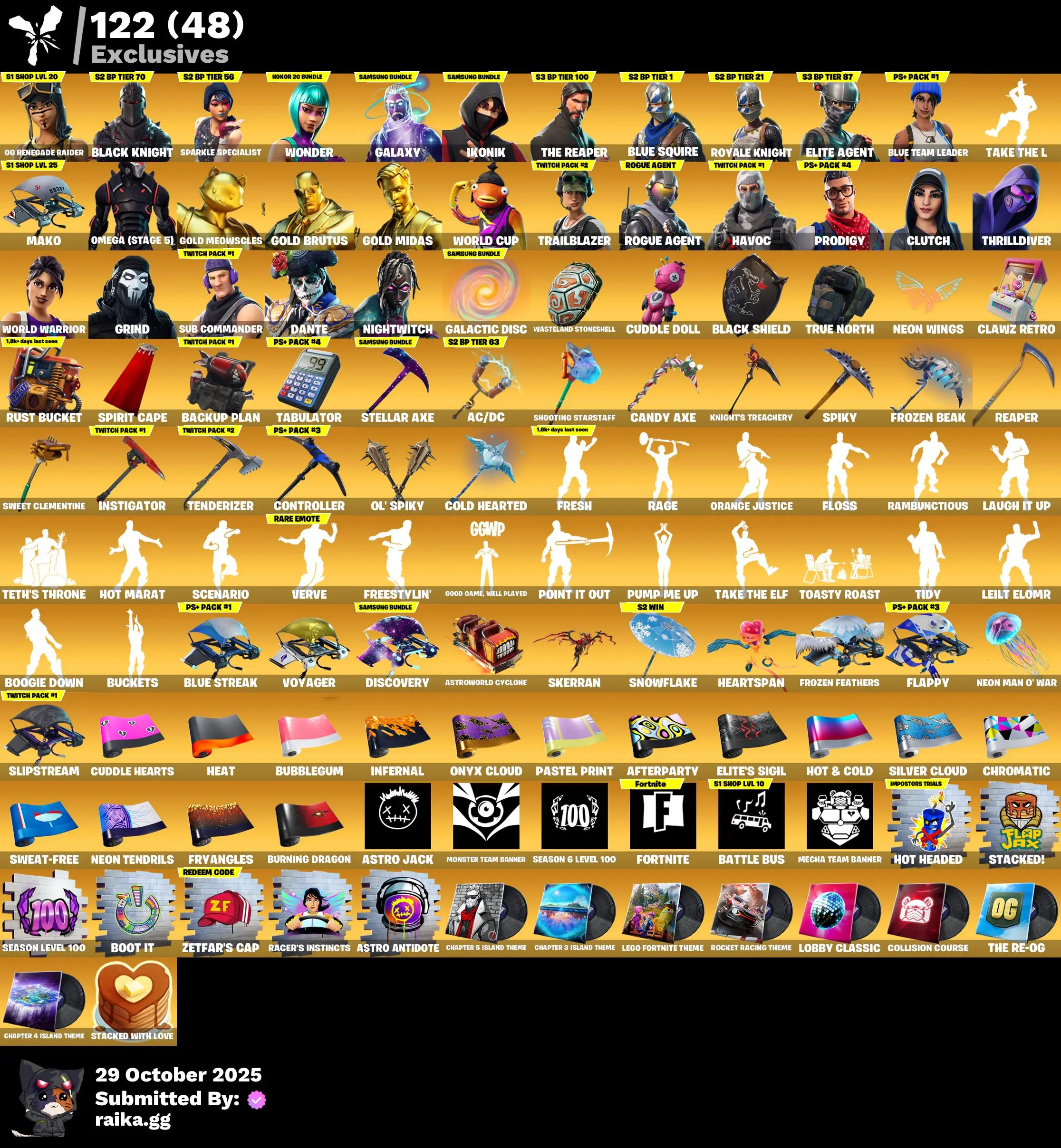 🔥 ULTIMATE OG STACKED EXCLUSIVES 👑 [PC] 336 Skins | OG Renegade Raider | Black Knight | Wonder | Galaxy | IKONIK | The Reaper | Sparkle Specialist | Freestylin | Fresh | Blue Squire | Royale Knight | Elite Agent | Twitch Prime Packs