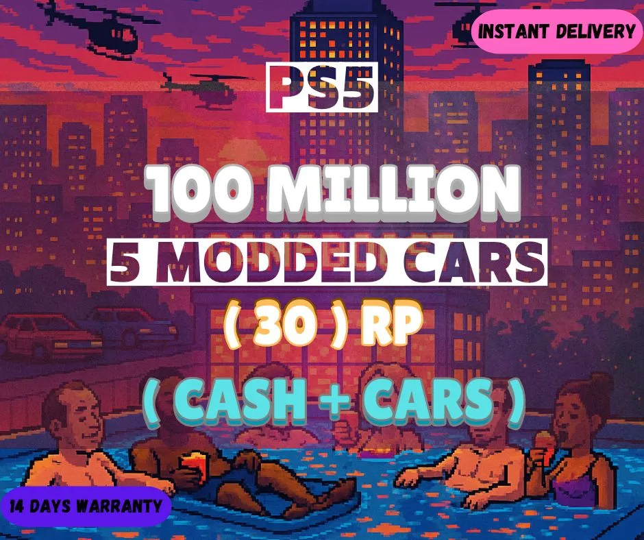 [PS5] GTA 5 Modded Account With 100M (Cash + Cars) | 5 Modded Cars | RP Rank 30 | Full Access | Instant Delivery | Quick Access | GAM14