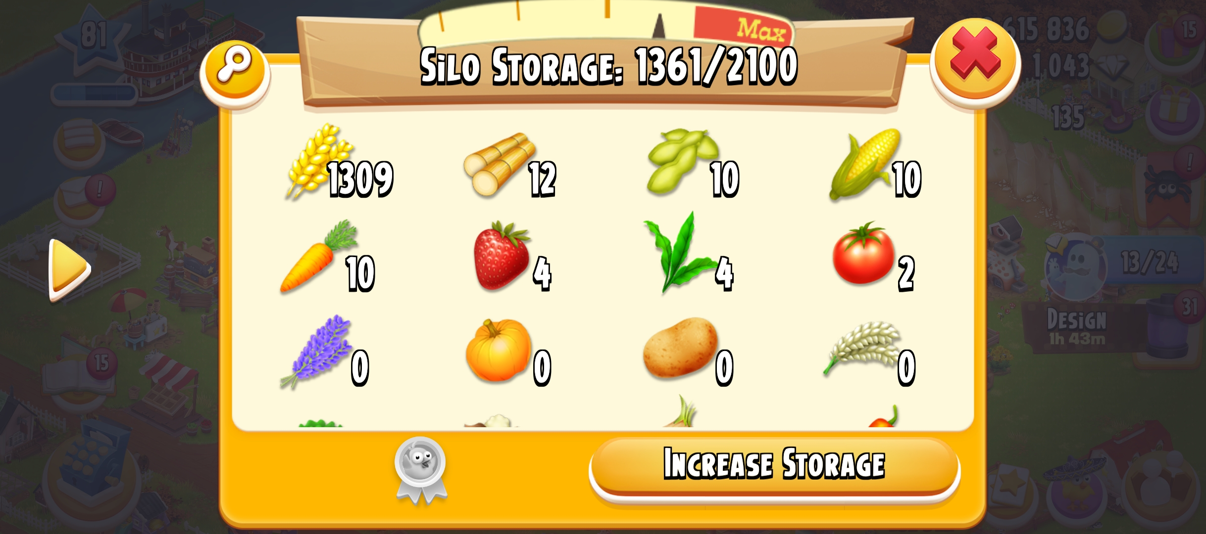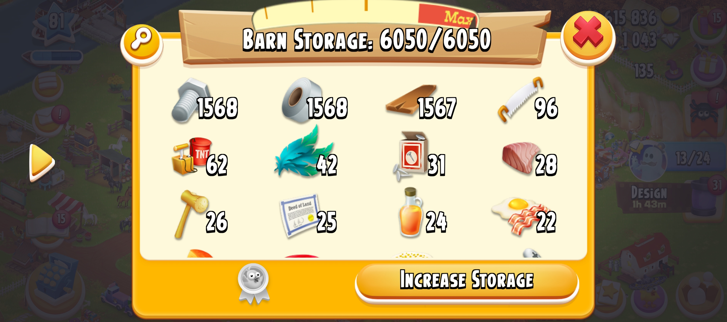 80 level | Barn Storage 6000 | Silo Storage 2100 | 2.5M Coin | 495 Gems | Android & IOS