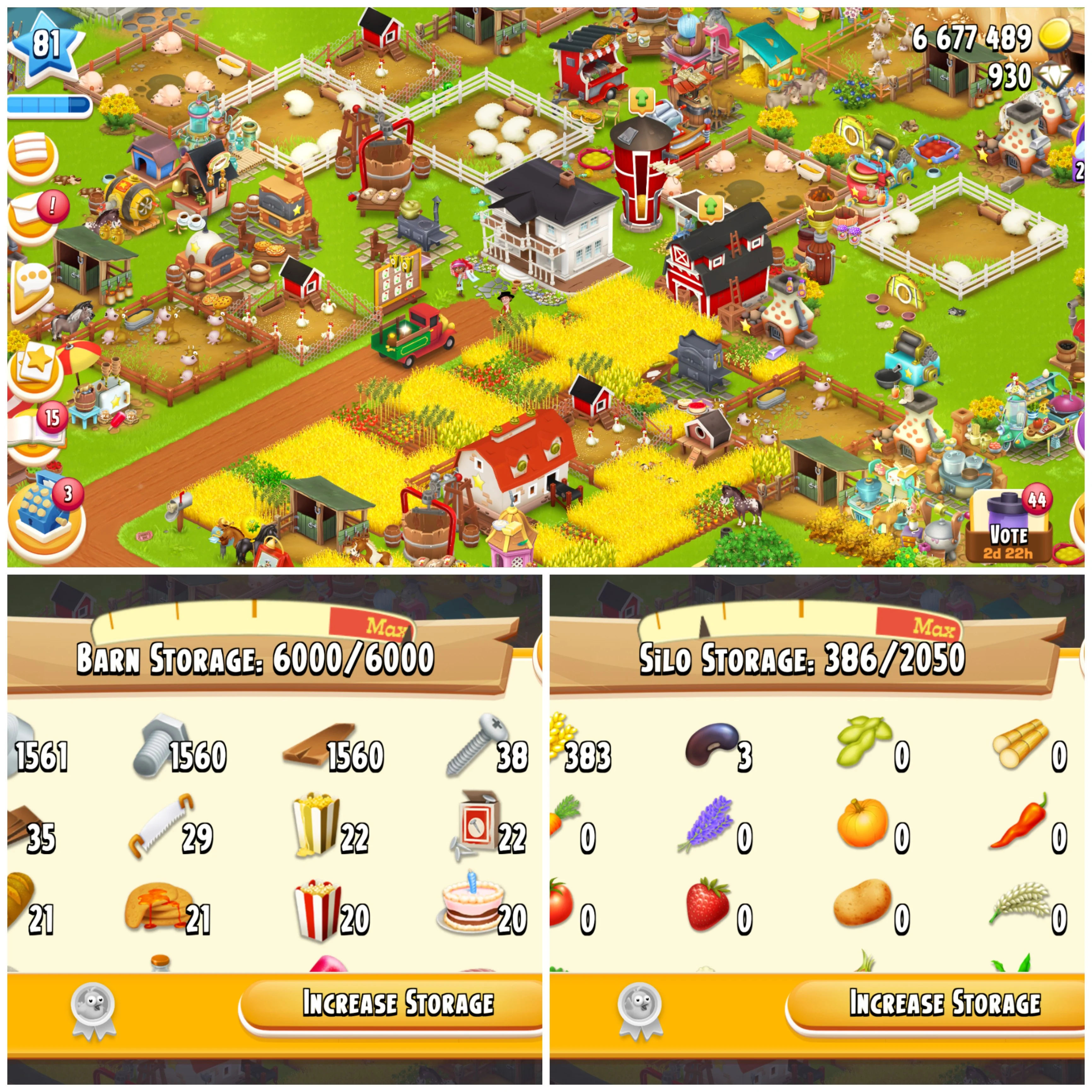 LEVEL 81 🔮 6000 BARN 🔮 2050 SILO 🔮 FULLY FILLED TOOLS 🔮 MATERIALS 🔮 6.6M COINS 🔮 930 DIAMONDS 🔮 FULL ACCESS 🔮 Instant Delivery