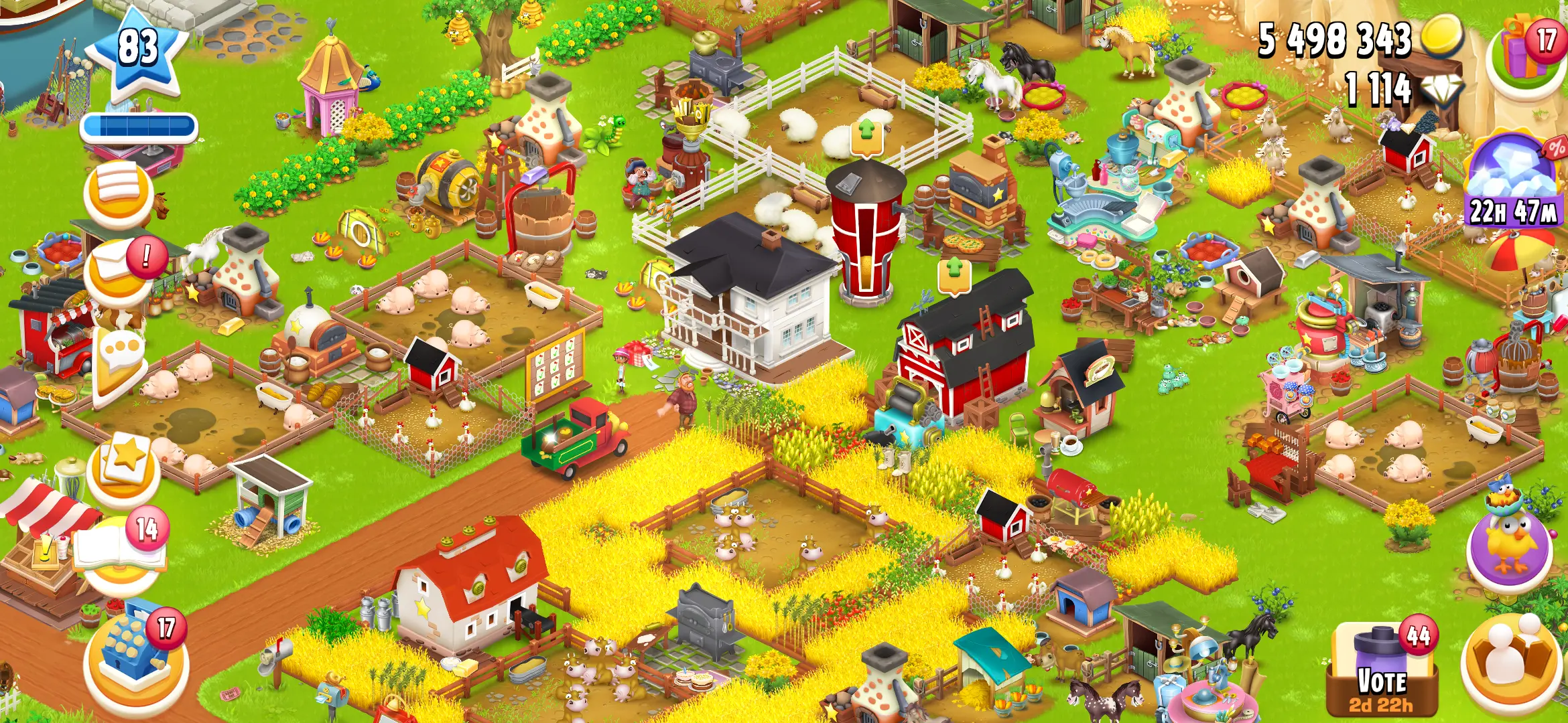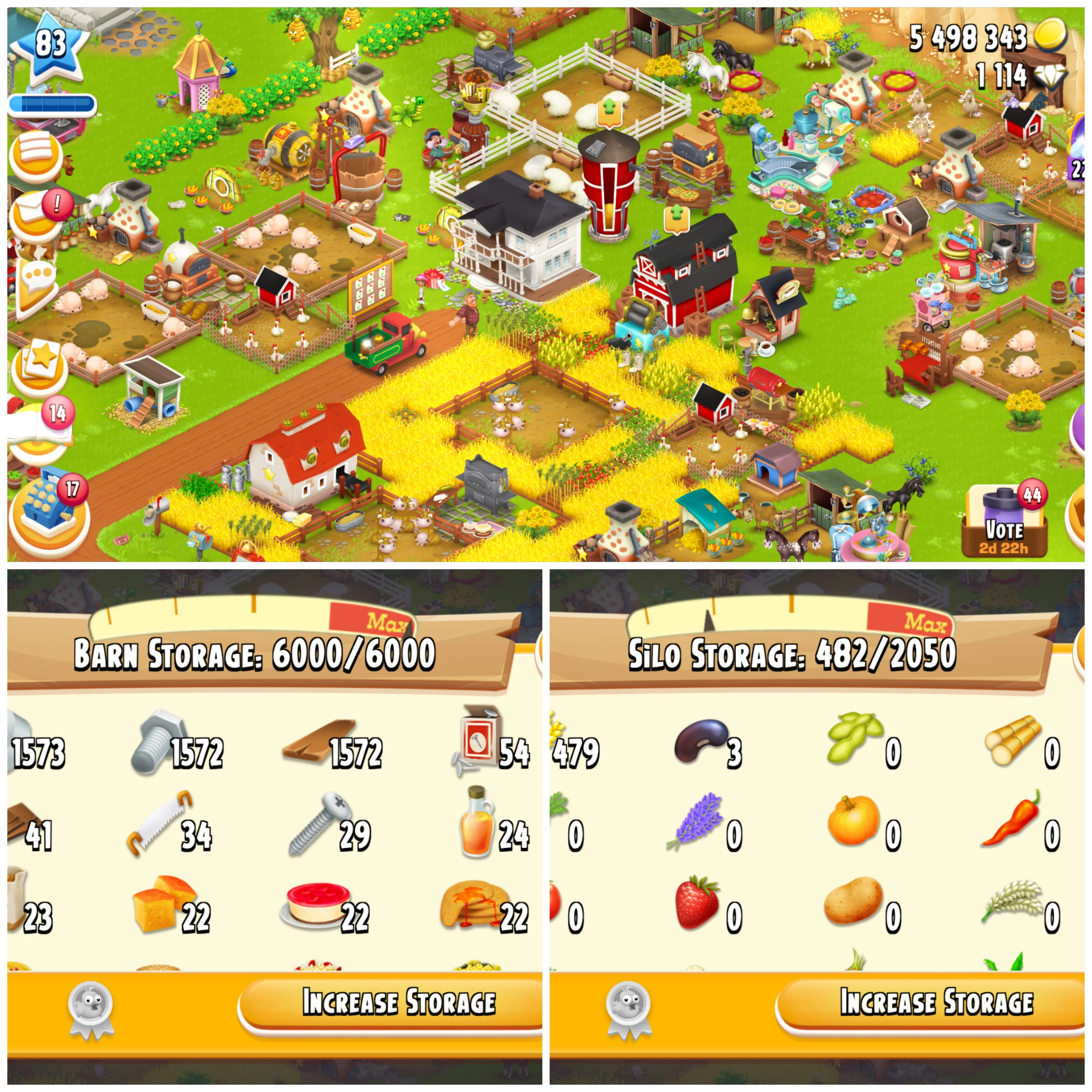 LEVEL 83 🧿 6000 BARN 🧿 2050 SILO 🧿 FULLY FILLED TOOLS 🧿 MATERIALS 🧿 5.4M COINS 🧿 1114 DIAMONDS 🧿 FULL ACCESS 🧿 Instant Delivery