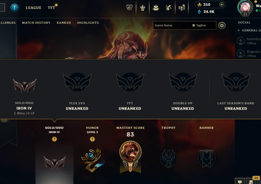 ⚡ 【 ME 】 ⸱ Iron IV 5.6% WR +18Games ⚡ | Hand ⸱ ( leveled + De-ranked ✌️ ) | Unverified ✅ | 24924 BE 💵 | 350 RP 💰 | Untouched-Loot 🔒 | Check Description 🔰