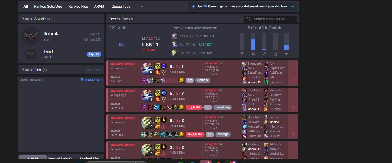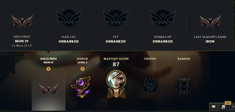 ⚡ 【 NA 】 ⸱ Iron IV 9.1% WR +26Lose ⚡ | Hand ⸱ ( leveled + De-ranked ✌️ ) | Unverified ✅ | 33140 BE 💵 | 350 RP 💰 | Untouched-Loot 🔒 | Check Description 🔰