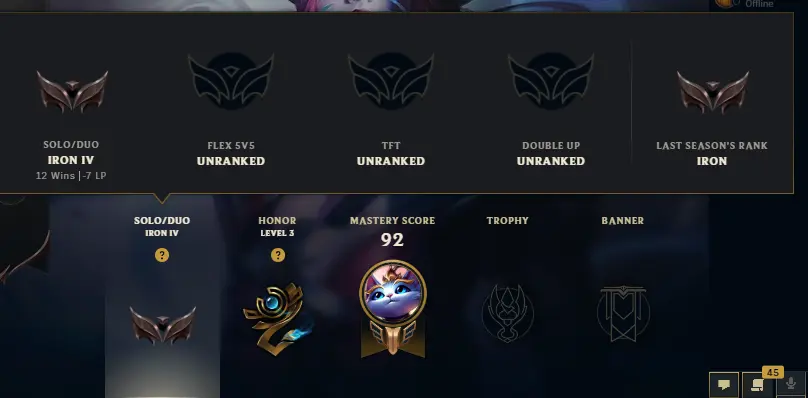 ⚡ 【 NA 】 ⸱ Iron IV 9.1% WR +28Lose ⚡ | Hand ⸱ ( leveled + De-ranked ✌️ ) | Unverified ✅ | 9600BE 💵 | 350 RP 💰 | Untouched-Loot 🔒 | Check Description 🔰