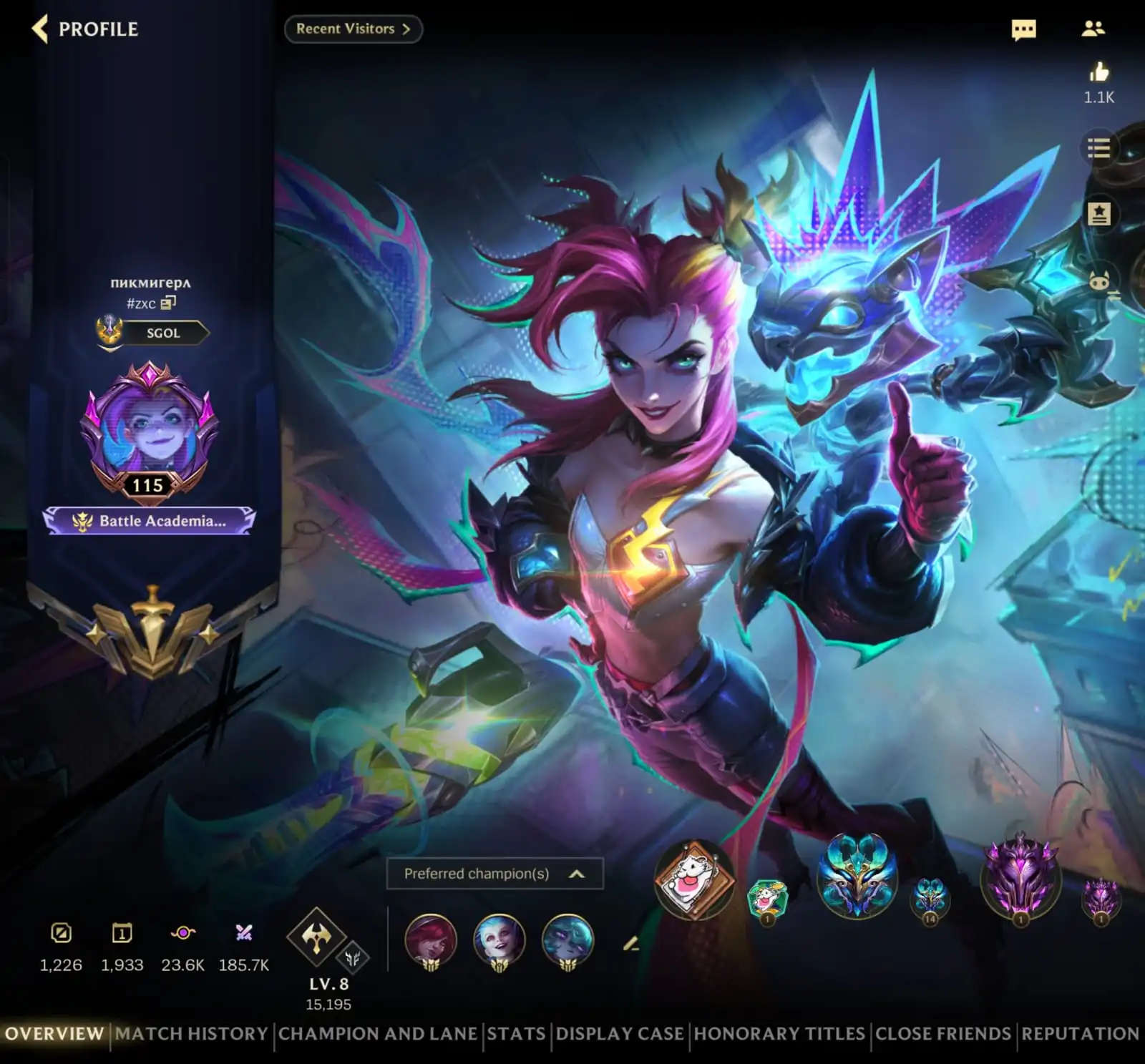 Wild Rift ST EU Account | Lv. 115 âSenior Collector Iâ | Ultimate Jinx | 110 Skins ( 1 Ultimate ⊠14 Legendary ⊠49 Epic )
