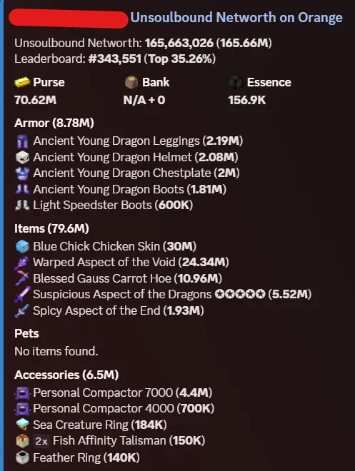 VIPâ42 SB Lvl | 165M Networth âž± 70M PurseâSolo Profile