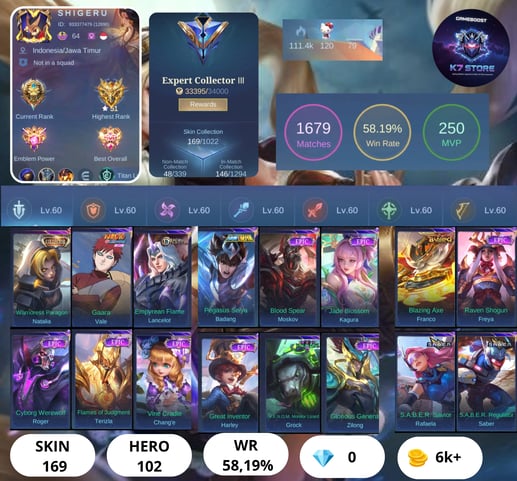 CHEAPEST✨HERO 57✨SKIN 76✨EMBLEM SEMIMAX✨ NATALIA CC✨BADANG SEIYA ✨BLAZING ALDOUS✨S.A.B.E.R 3✨EPIC 6✨SPECIAL 12✨SAFE ACC✨INSTAN DELIVERY