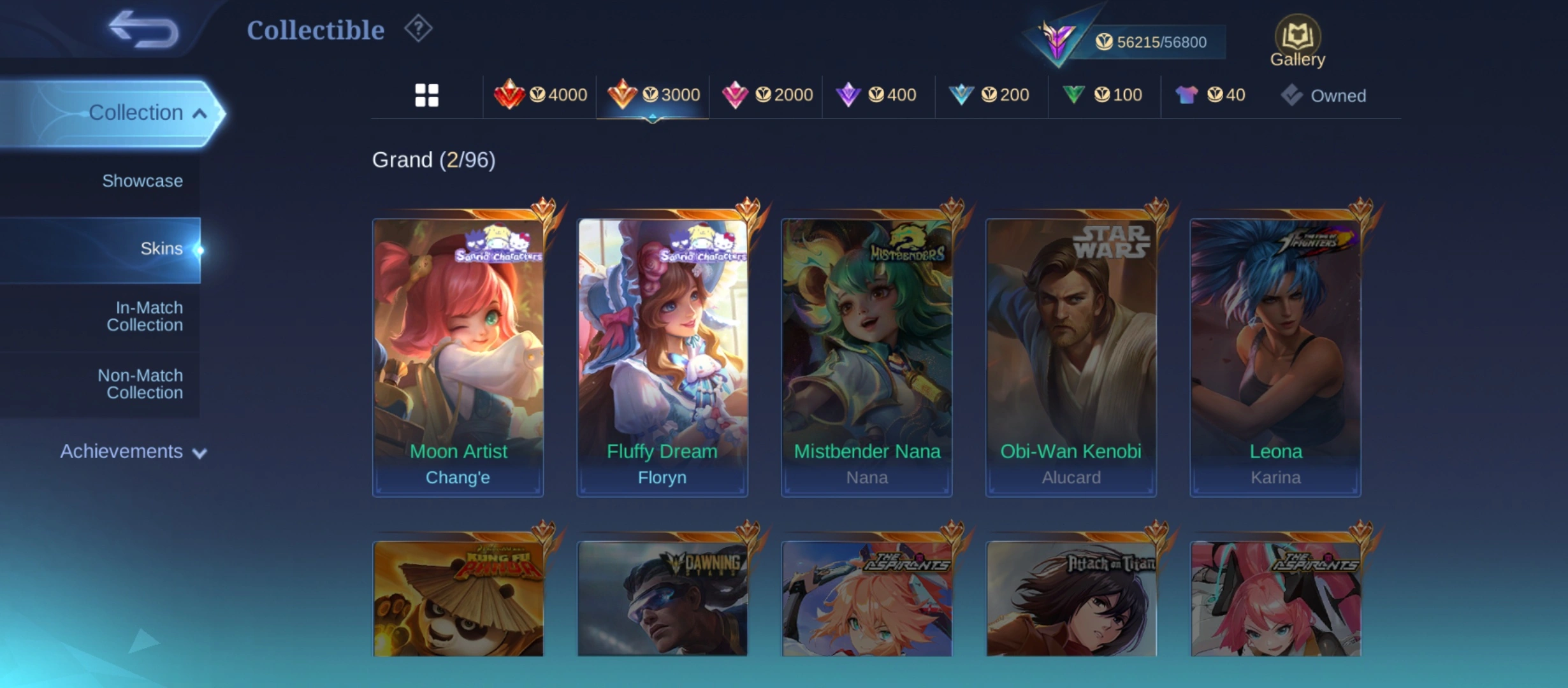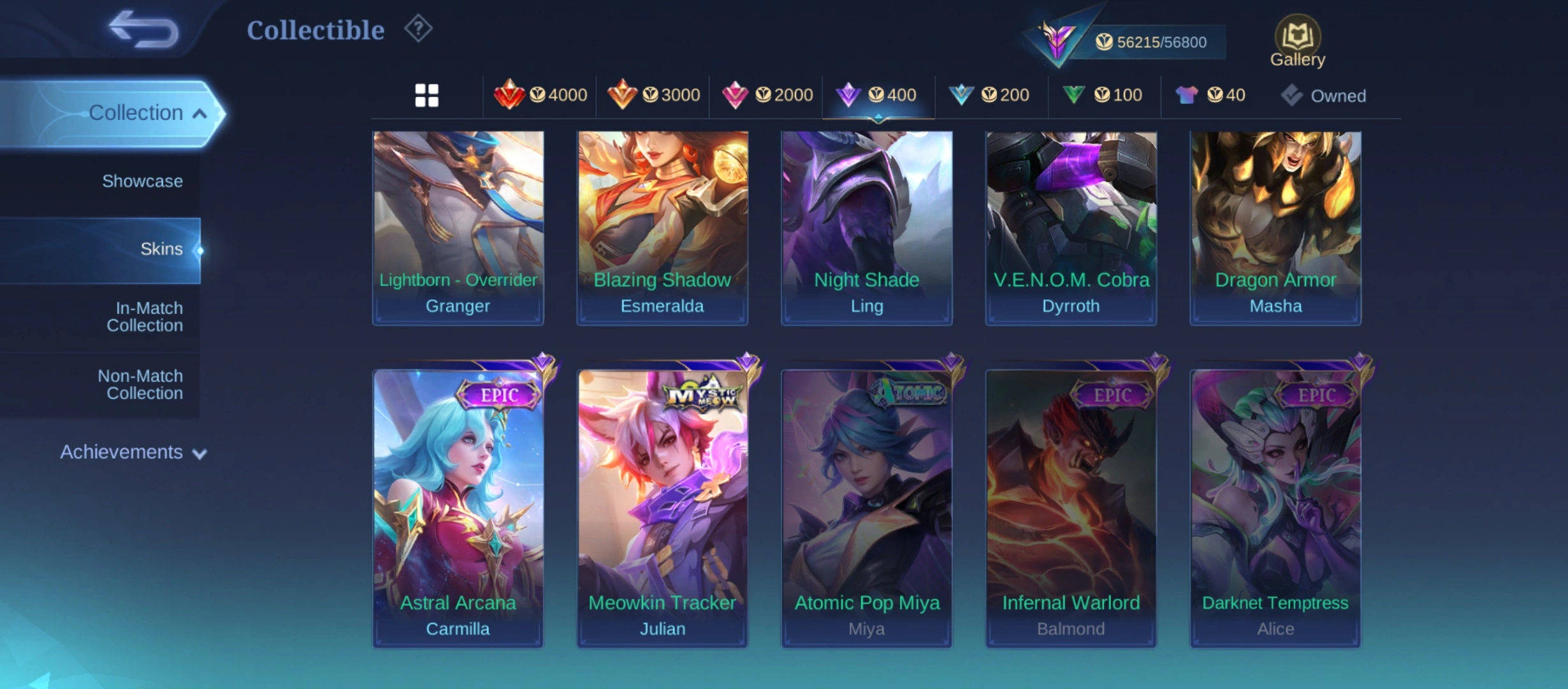 GG883|Lvl 60|RENOWNED CC 4|214 SKIN|ALL EMBLEM MAX|2 SANRIO(CHANG'E,FLORYN)|HAYABUSA ANNUAL|2 LUCKYBOX(HAYABUSA,ALPHA)|12 EPIC SKIN|EPIC 2