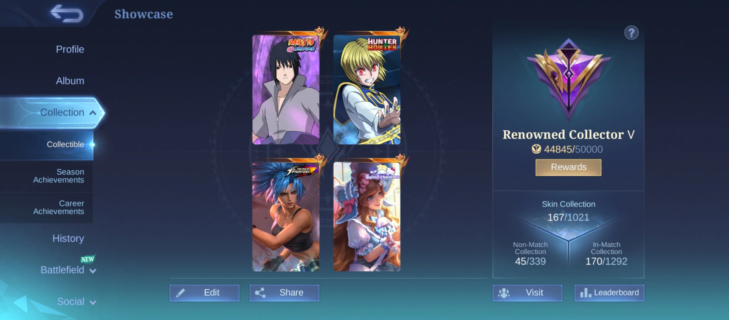 GG890|Lvl 37|RENOWNED CC 5|150 MAGIC CORE|167 SKIN|KURAPIKA JULIAN HXH|SASUKE SUYOU|FLORYN SANRIO|FREYA LUCKYBOX|6 EPIC SKIN|LUNOX ZODIAC|LEGEND 5