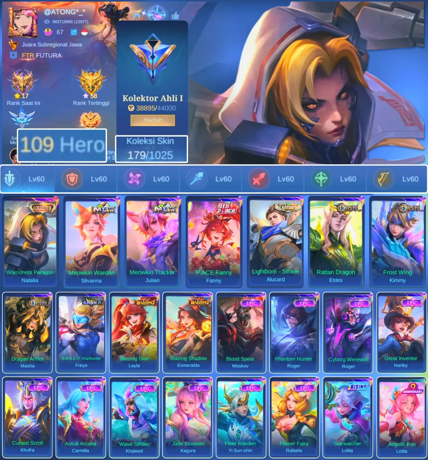 HERO 109 SKIN 179 | EMBLEM ALL MAX | COLECTOR NATALIA | FANNY PACE | EPIC KHALED | HERO GOOD | SKIN GOOD| INSTAN DELIVERY