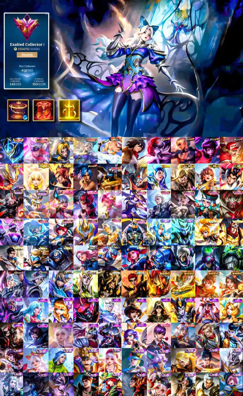 [IOS/ANDROID] CEL LVL 84 | 128 HEROES | 418 SKINS | EXALTED 1 | GUSION & FREYA LEGEND ⸱ FANNY MIKASA & ASPIRANT ⸱ SELENA ZENITH ⸱ CHOU KOF ⸱ GUSION KOF ⸱ MOSKOV ALL STARS