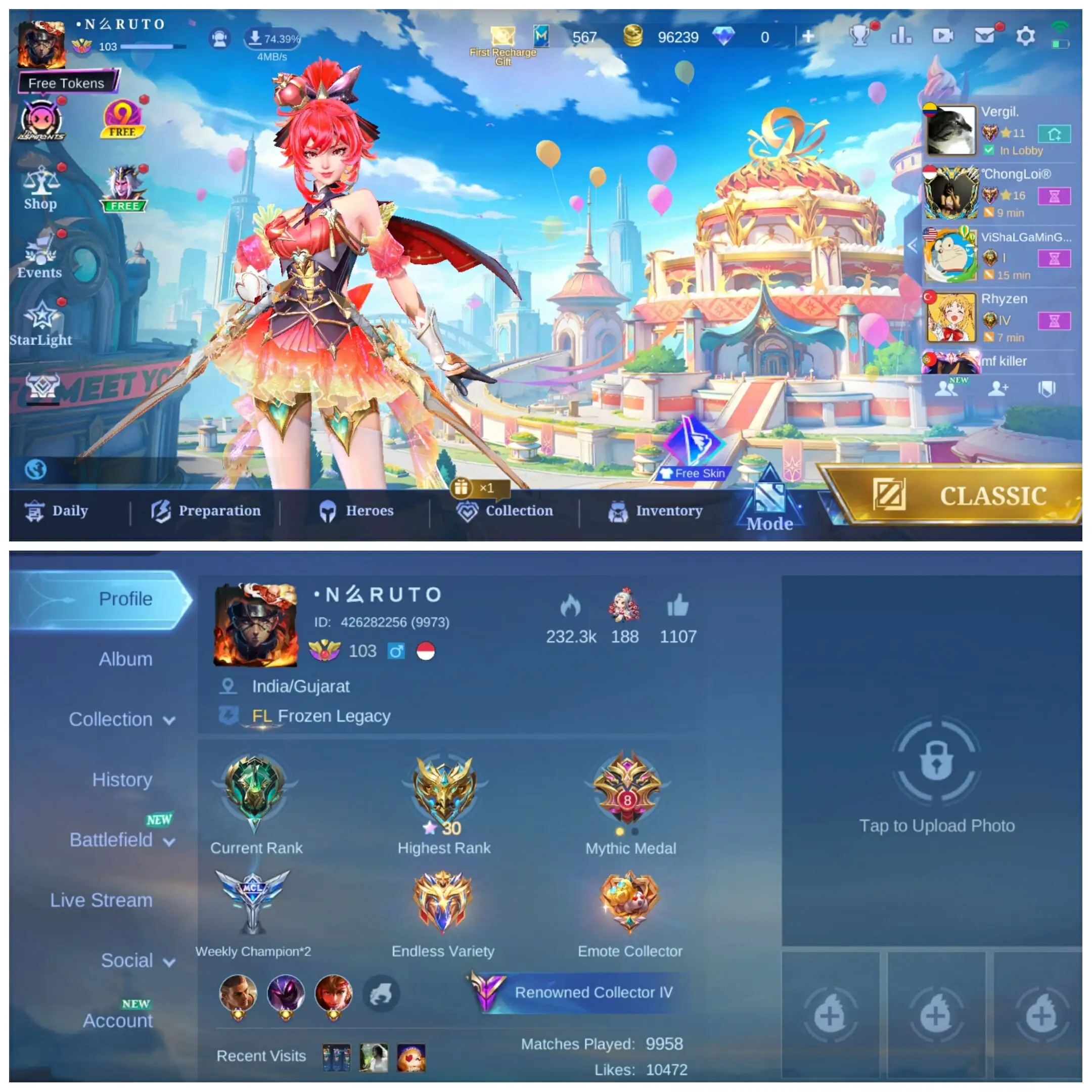 Level: 103🔰Liked: 1107🔰Skin: 255🔰Hero:130🔰Win Rate:50%🔰Chou Kof,Street Punk,Street Blow,Badang Leo🔰 Lots of Old Skin and Old Heros🔰Full Access[FAST DELIVERY]
