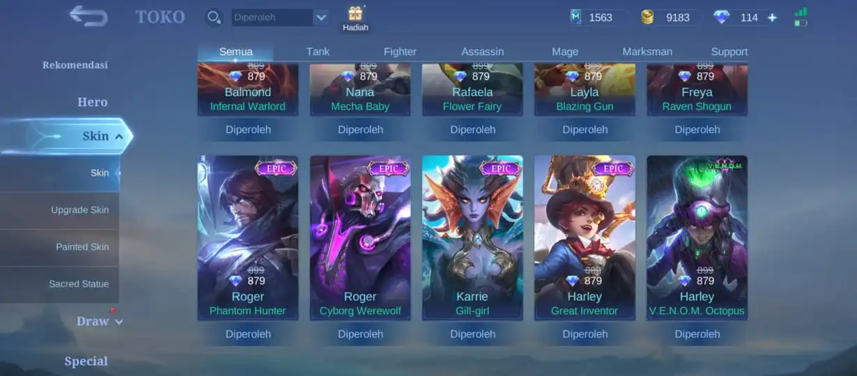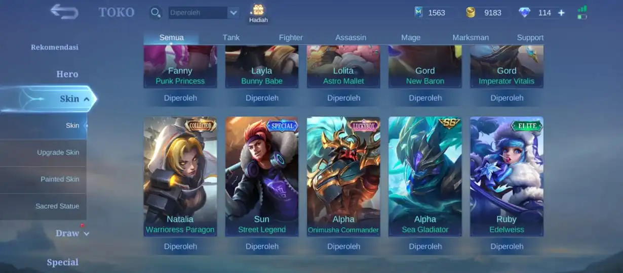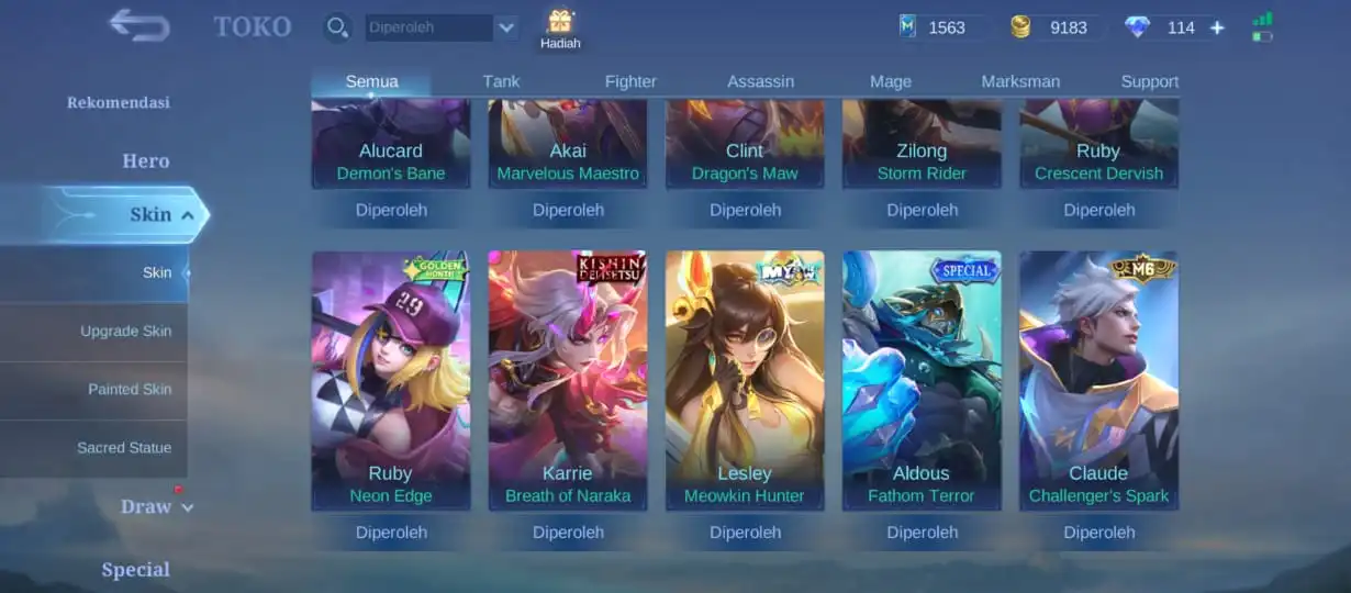 MW55/LV85/128HERO/257SKIN/FREE LEGEND SKIN/NEOBEAST LING/PRIME CLAUDE/KISHIN KARRIE/ANNUAL KARRIE/LUCKYBOX ALPHA/VALENTINE FANNY/YUZHONG M5/LIGHTBORN GRANGER/12 EPIC LIMIT