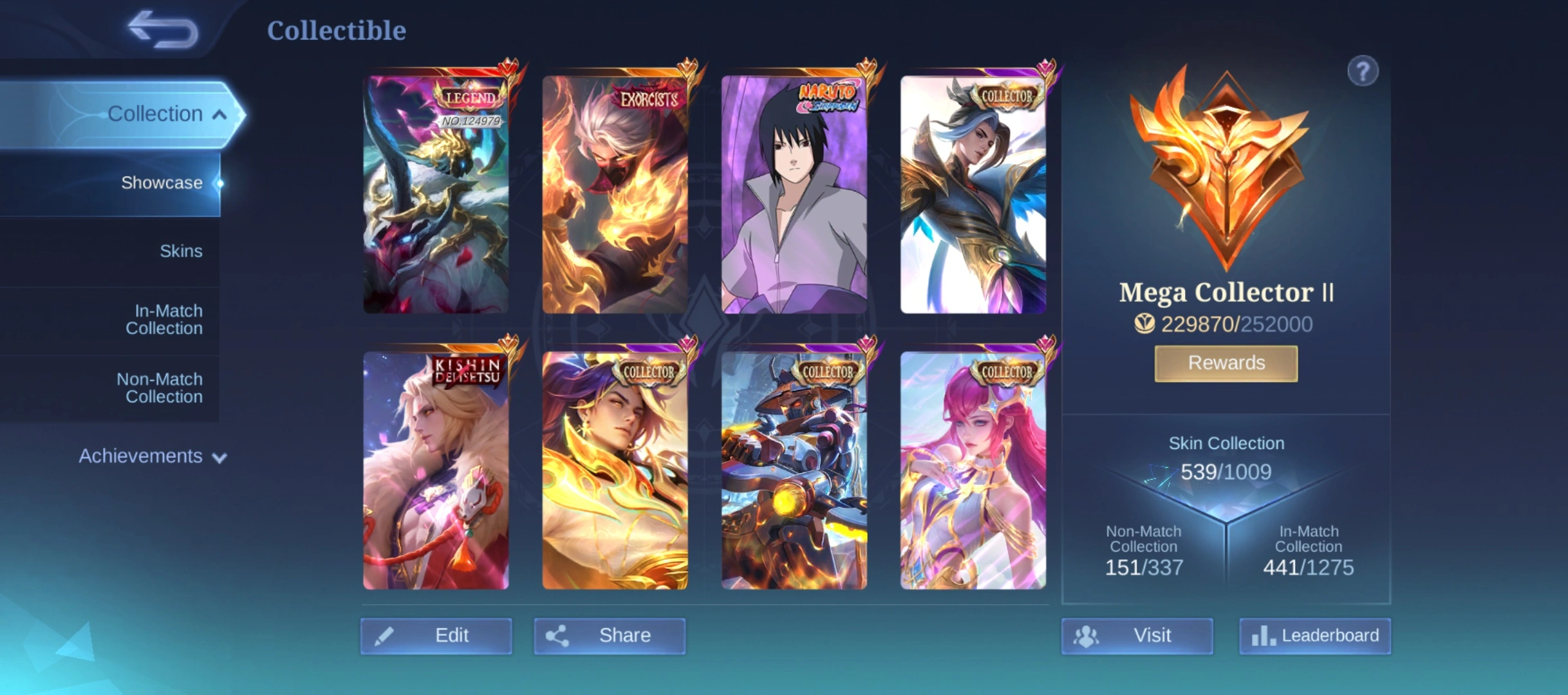 N245|LV 157|MEGA COLLECTOR II|539 SKIN|4 LEGEND(ALPHA,LESLEY,ETC)SUYOU SASUKE|LANCE KINSHIN|LING NEOBEAST|HAYA EXORCITS|ARGUS STARWAR|BENED DUCATI|NOLAN 11.11|DYROTH GON|2 KUNFU PANDA|3 KOF