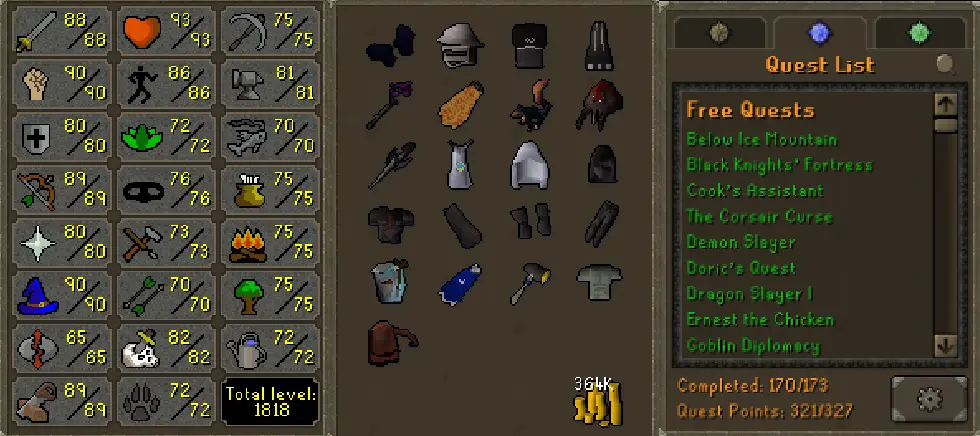 Main | 1810+ Total | 320+ QP | Avernic | F Cape | Void | Assembler | Torso | MA2 Cape | Rune Pouch | Pets ⸱ CG67617-4889