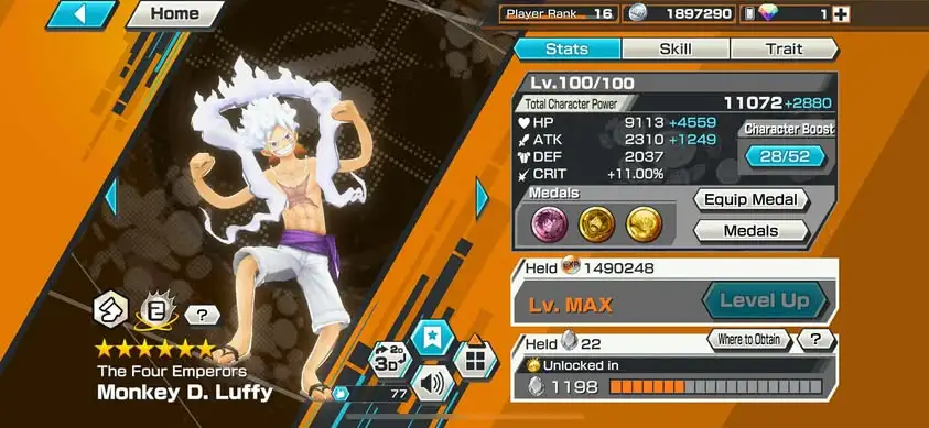 ![[3365][ ANDROID ] 5 EX META MAX / Luffy Light + Kizaru + Lucci + Saturn + Roger / 2530 GEMS ANDROID / 508 gold stones / Solo Fresh](https://cdn.gameboost.com/static/platforms/android.webp)