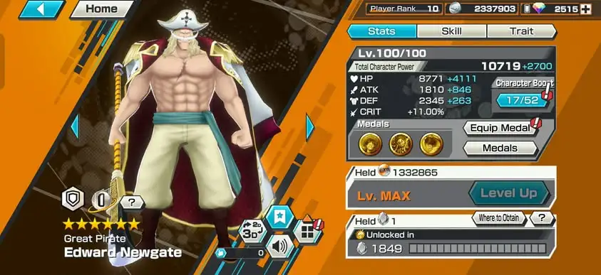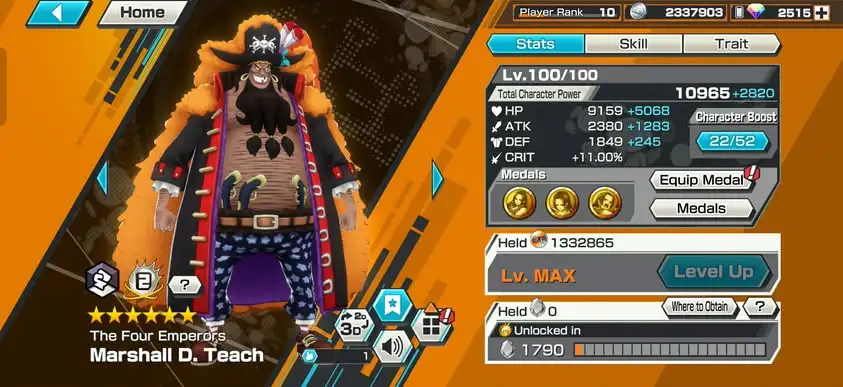[4172] [ANDROID] 2 EX META MAX / Blackbeard + Whitebeard, 2525 ANDROID GEMS, Solo Fresh, Good Medal