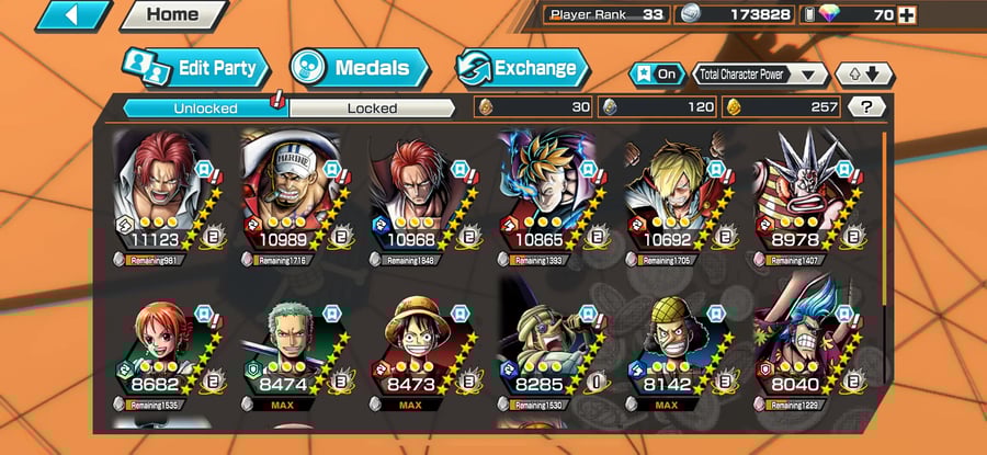 B149🔥8 Ex Meta 1 Max🔥Monkey D Luffy V2 Max🔥Kuzan🔥Shanks🔥Yamato Ace🔥Sabo🔥Zephry🔥Shanks🔥Bigmom🔥Support 132🤝Good Medal🎖️Many Medal Material🥇iOS & Android