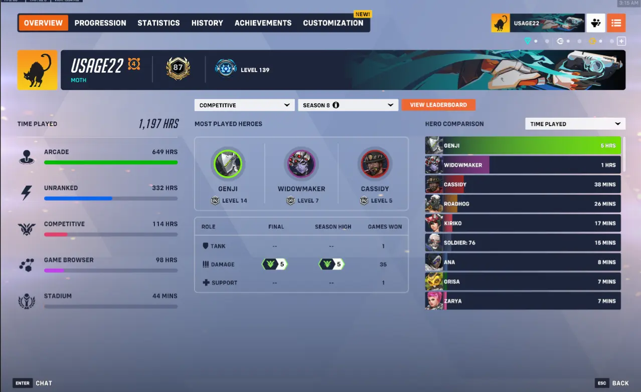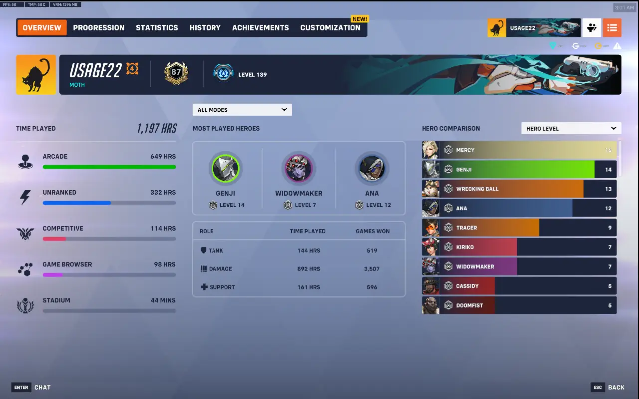 2017 Main Acc ⸱  Stacked Gold Border OW1 | All OWL Skins on Genji + All OWL Home & Away | Limited Time Events :  Thunder Doomfist / Happi Genji / Ange de la Mort / Haoeris Ana / Clockwork/ Dr.Ziegler + All Stars Skins  | 10+ Gold Guns