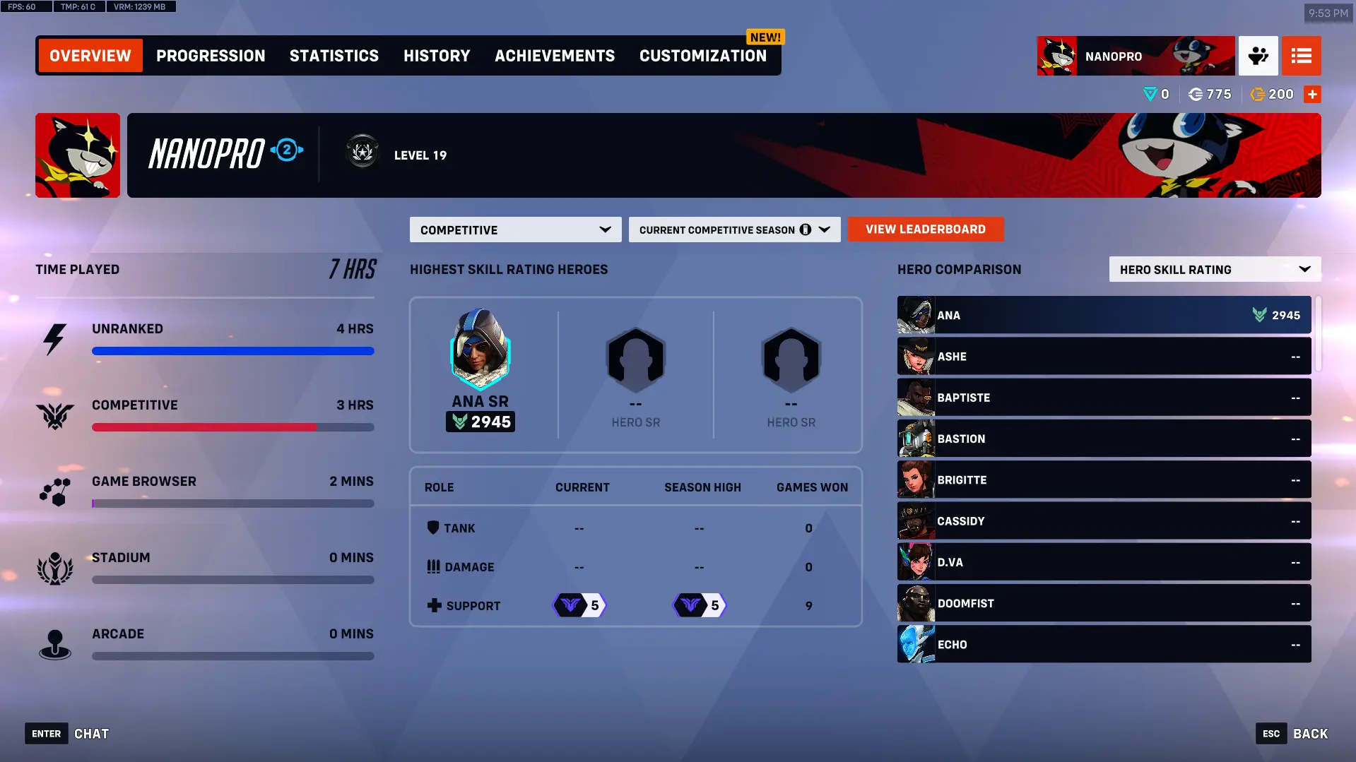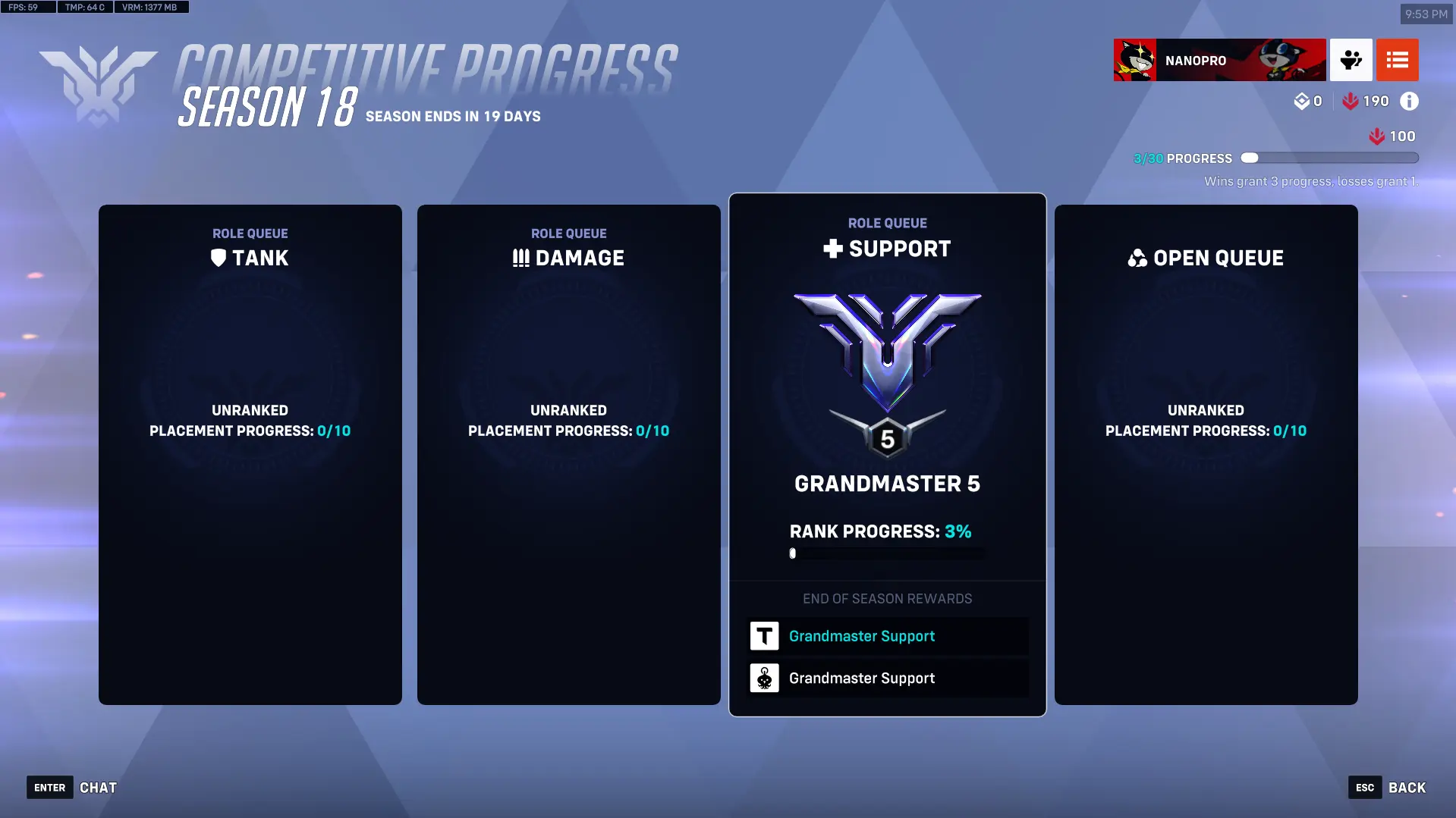 Season 18 🌀 Grandmaster Support 💠 75 Loot Boxes 📦 Endorsement Level 2 ✨ Phone Verified 💠 Full Access 💠 Name Change