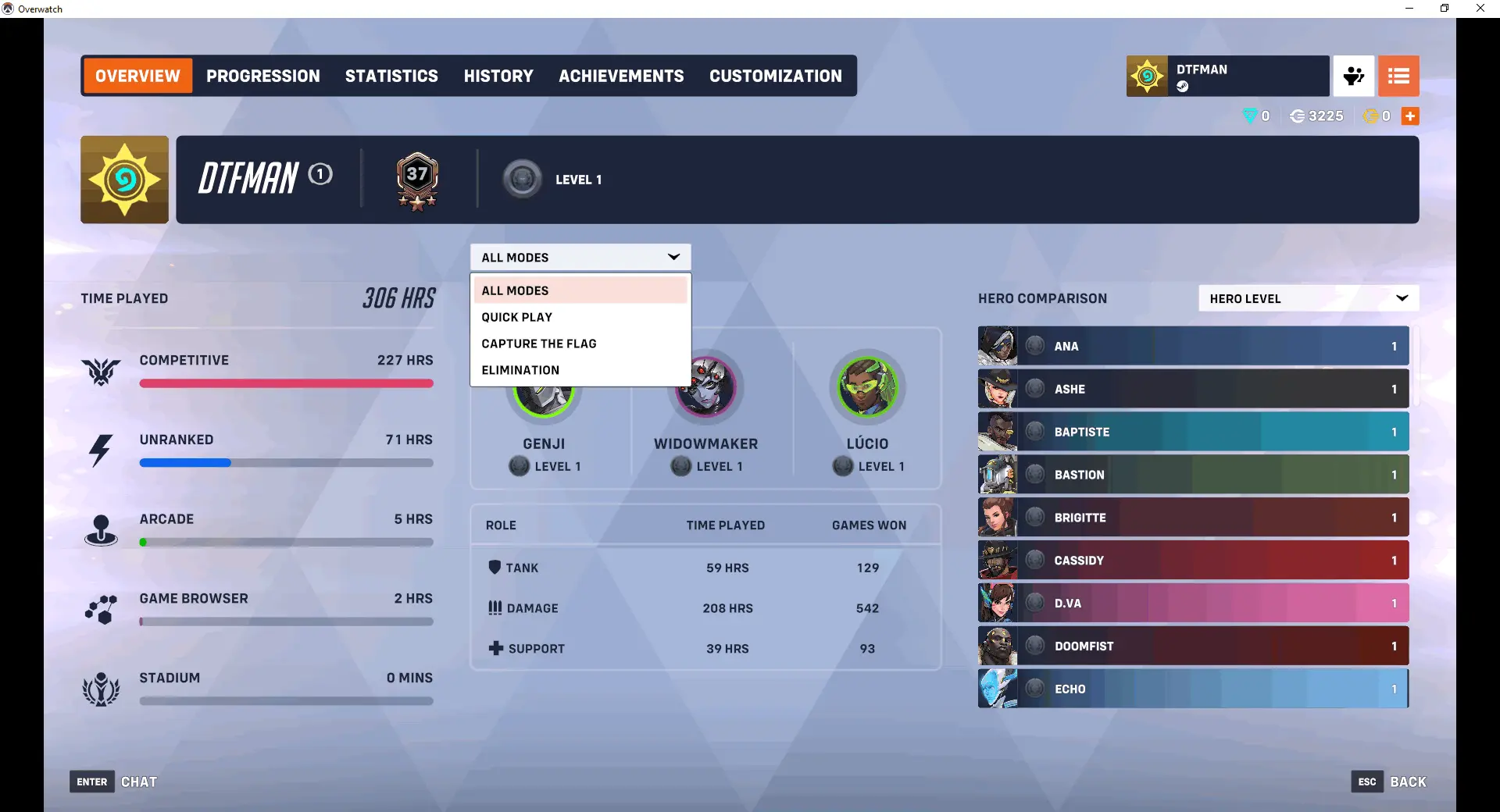 Steam Account + 124 SKINS + Free Choose 1 Golden Weapon + WINSTON Golden Weapon + GENJI Golden Weapon + GENJI BLACKWATCH + GENJI NIHON + TRACER CADET