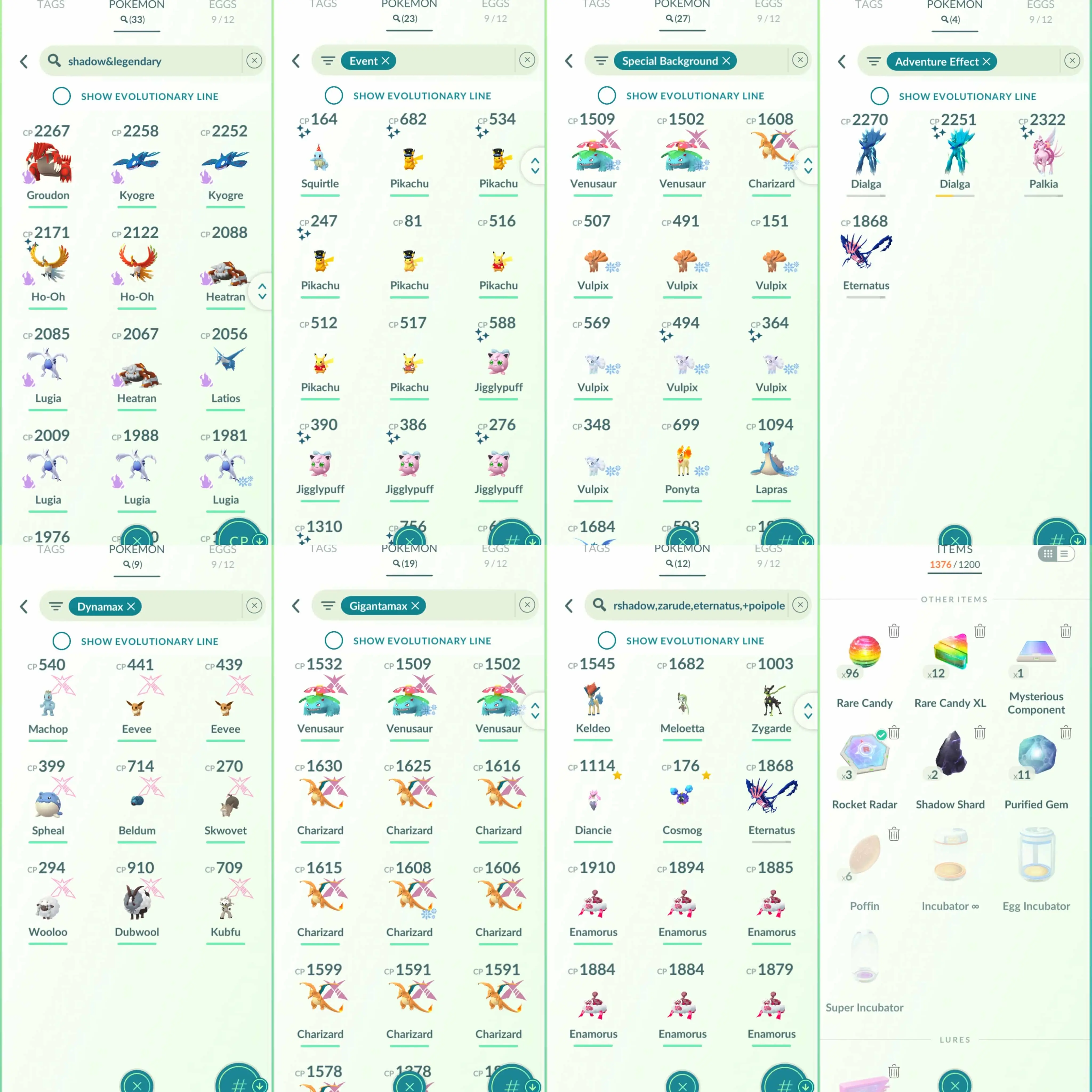 Shiny: Lugia, shadow Ho-Oh, Giratina.
