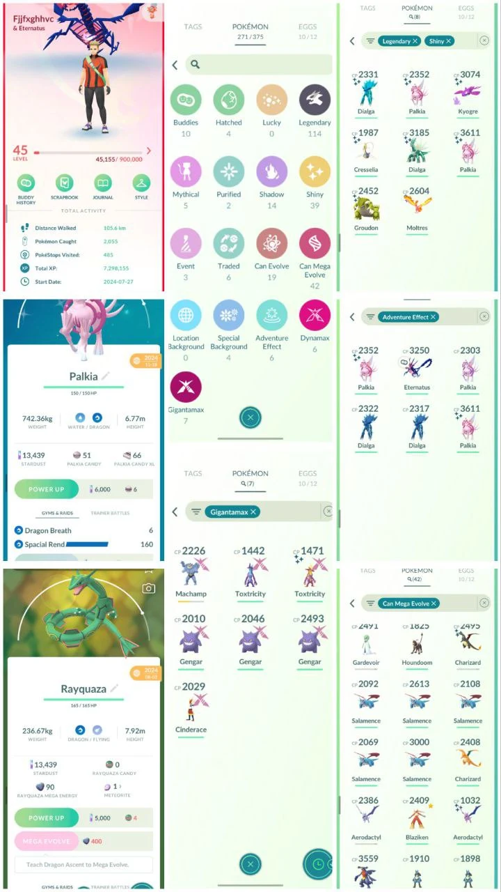 VH13 | Level45 | 114 Legendary | 39 Shiny | 8 Shiny Legend | 2 Special Rend Shiny Palkia | Rayquaza With DA Move | Shiny Gmax Toxicity | 2 ROT Dailga | Shiny Mega Charizard | Eternatus | Stacked Account