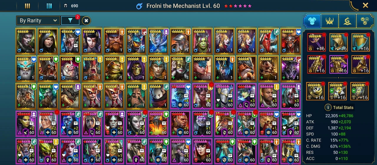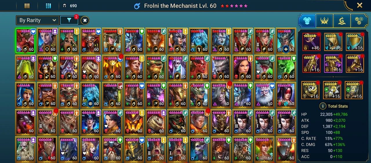 RK153 | 100 lvl account / 12,59M Power / 136 legendary , 1 mythic , 334 epic champions / 133,63M Silver / 1,6k Gems / 3k Energy