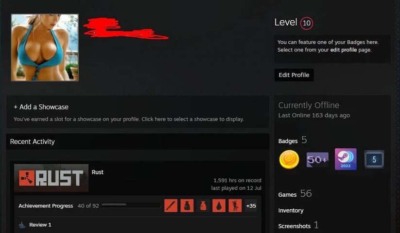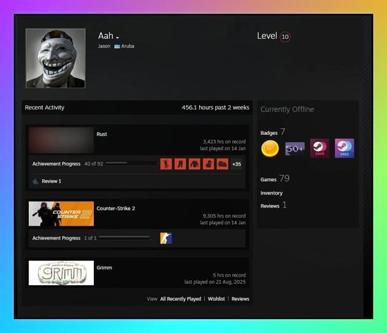 Rust ⸱ 4487 Hours Played ⸱ Native Email ⸱ 109 Twitch Drops ⸱ Steam Level 10