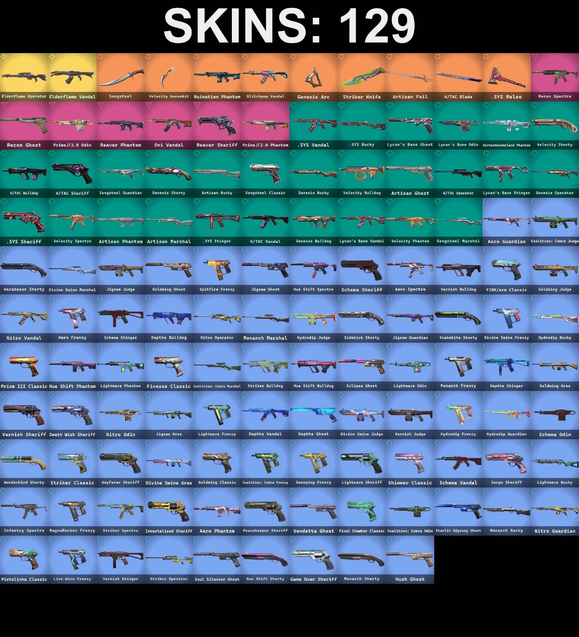 ❤️ 129 SKINS ❤️ 7 KNIFE ❤️ RUINATION PHANTOM ❤️ ELDERFLAME VANDAL ❤️ ELDERFLAME OPERATOR ❤️ GLITCHPOP VANDAL ❤️ REAVER PHANTOM ❤️ REAVER SHERIFF ❤️ PRIME//2.0 PHANTOM ❤️ PRIME//2.0 ODIN ❤️ ONI VANDAL ❤️ DIVINE SWINE MARSHAL ❤️