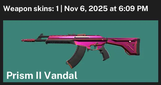 âčïžââïž AP đč Unranked đ 1 Skins đ 150 VP đŁââïž 1 Agents â Value: 875 VP đĄ Prism II Vandal