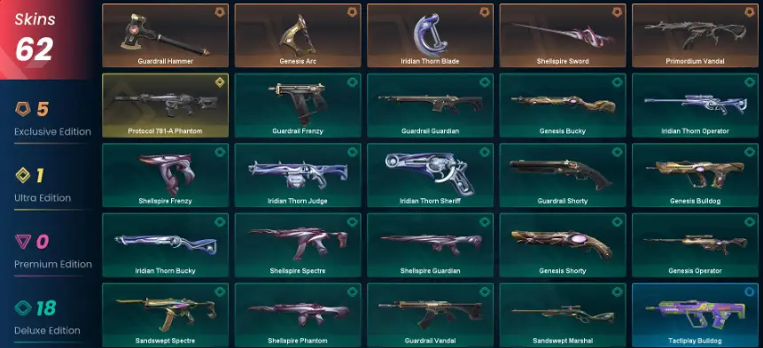 EU / 62 Skins / 4 Knives / Protocol 781-A Phantom / Primordium Vandal mssh176