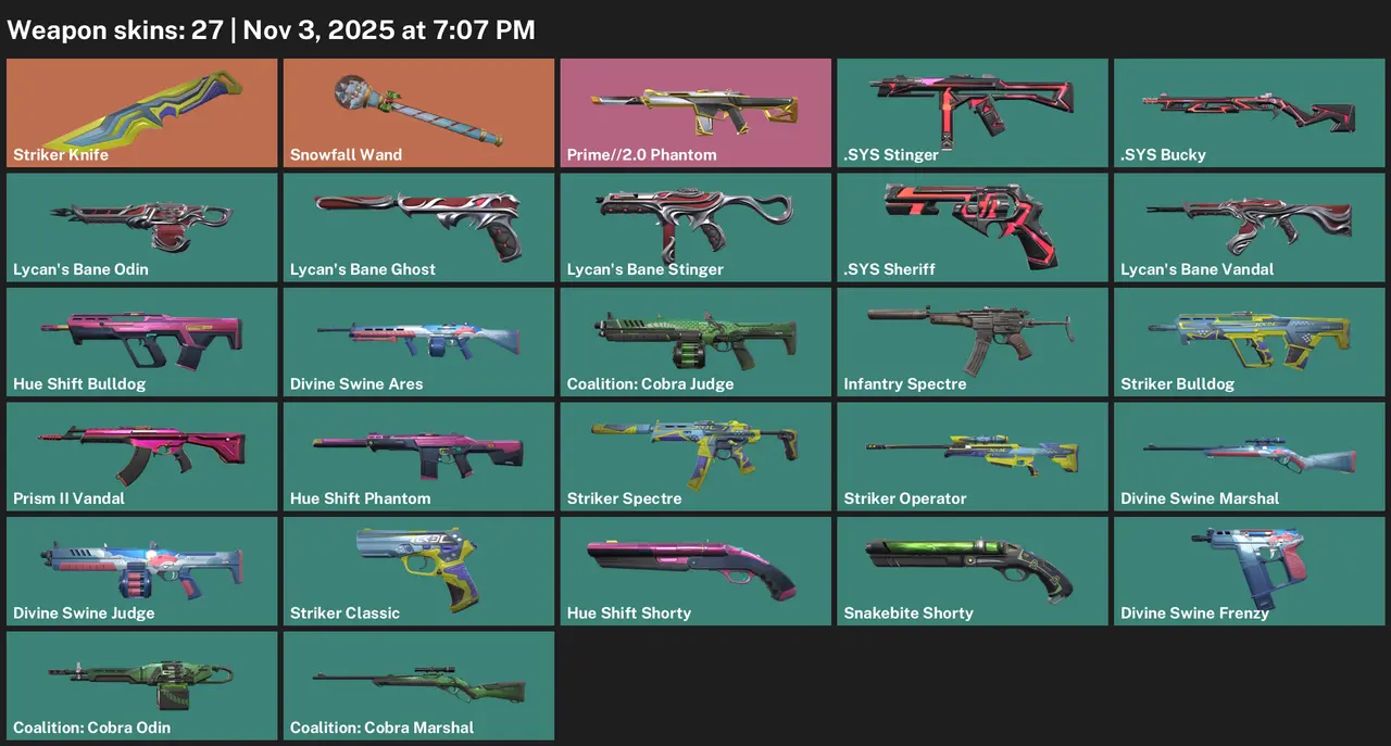 [NA] 🔥 | 27 Skins • Prime 2.0 Phantom + Lycan’s Bane Set + Striker Bundle • 6,075 VP • Full Access