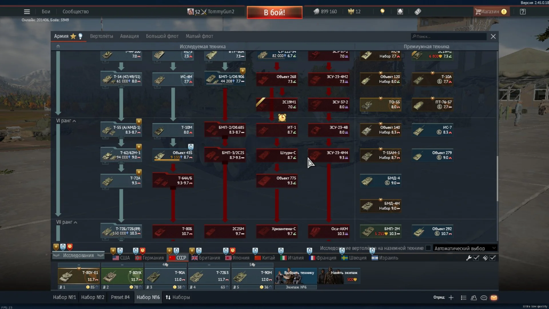 USSR ⸱ 12.0 b-r + Prem and Regimental Equipment, USA ⸱ 6.0 b-r + M1A1 Click Bait + M1A1 Aim,