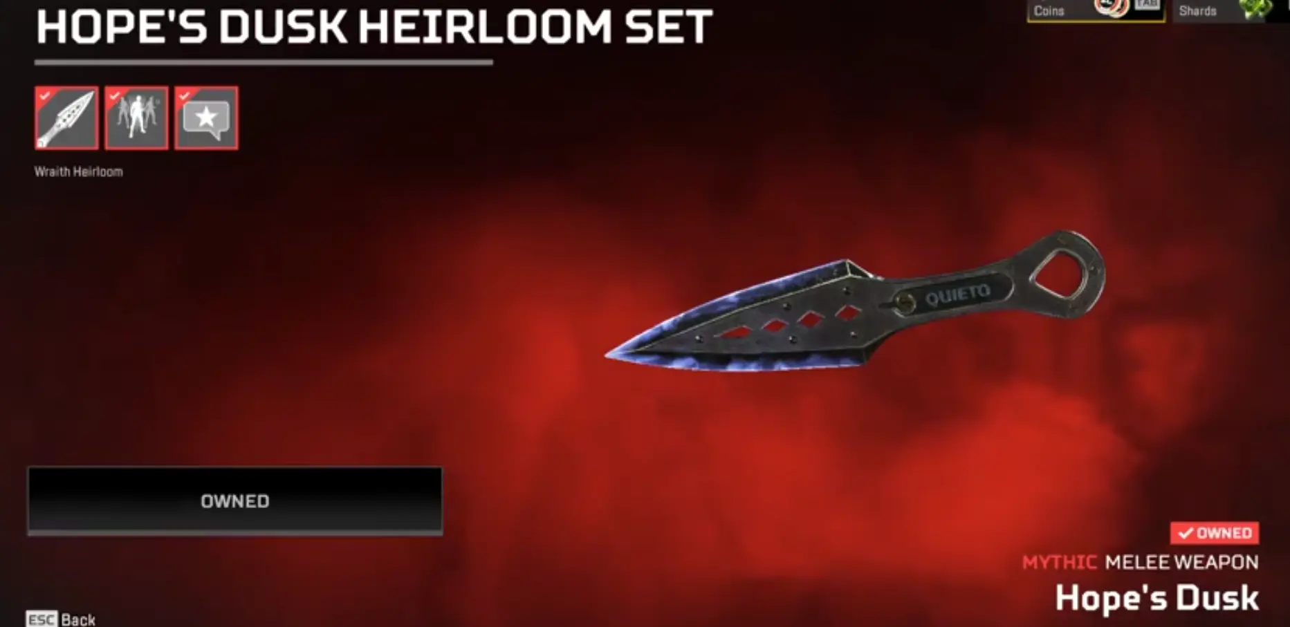 AP457 WRAITH HEIRLOOM 275 lvl 55 legendary skins Hope's Dusk Relic Unlocked