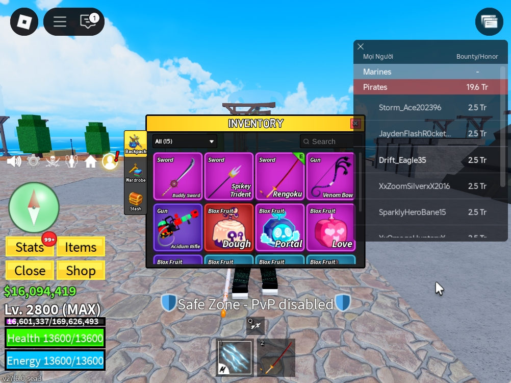 Level 2800+Godhuman+Dough Inven|Unverified Account|Instant Delivery|Blox Fruits