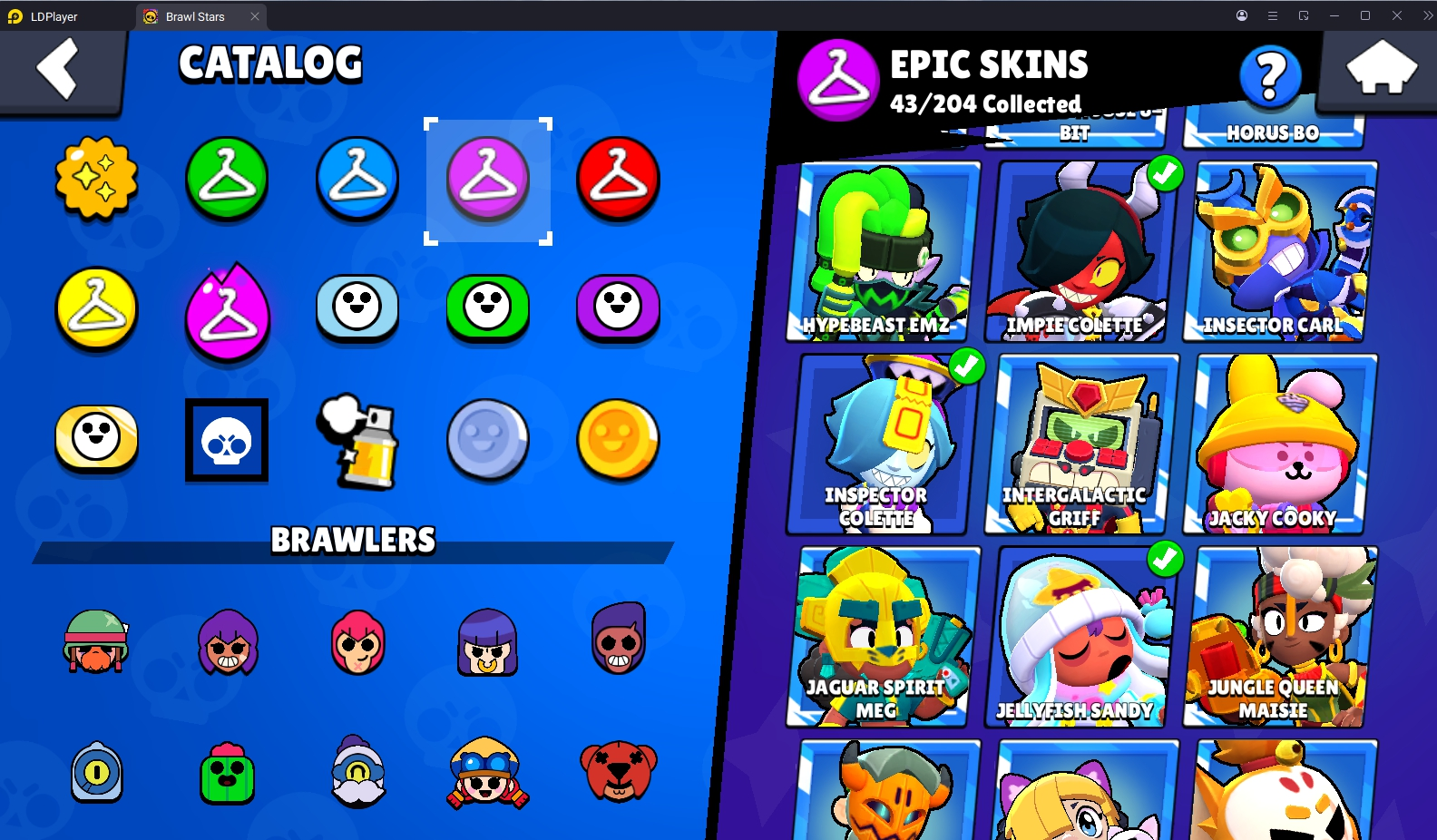 167 SKINS 💯 PIN MATCHERINO 🧡 PIN 11.11 🧡 42.053 TROPHIES 🏆 89 BRAWLERS 🐼 20 HYPERCHARGED 🩸 30 MAX BRAWLERS 💛 URBAN NINJA TARA 🧡 PYRO SPIKE 🧡 EVIL GENE 🧡 INSPECTOR COLETTE 🧡 POP MELODIE 💯